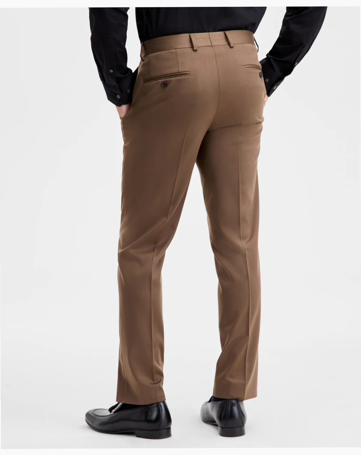 A slick satin finish is matched by a sleek slim-cut on these Bar III suit separate pants, offering a look for your wardrobe that exemplifies modern fashion.