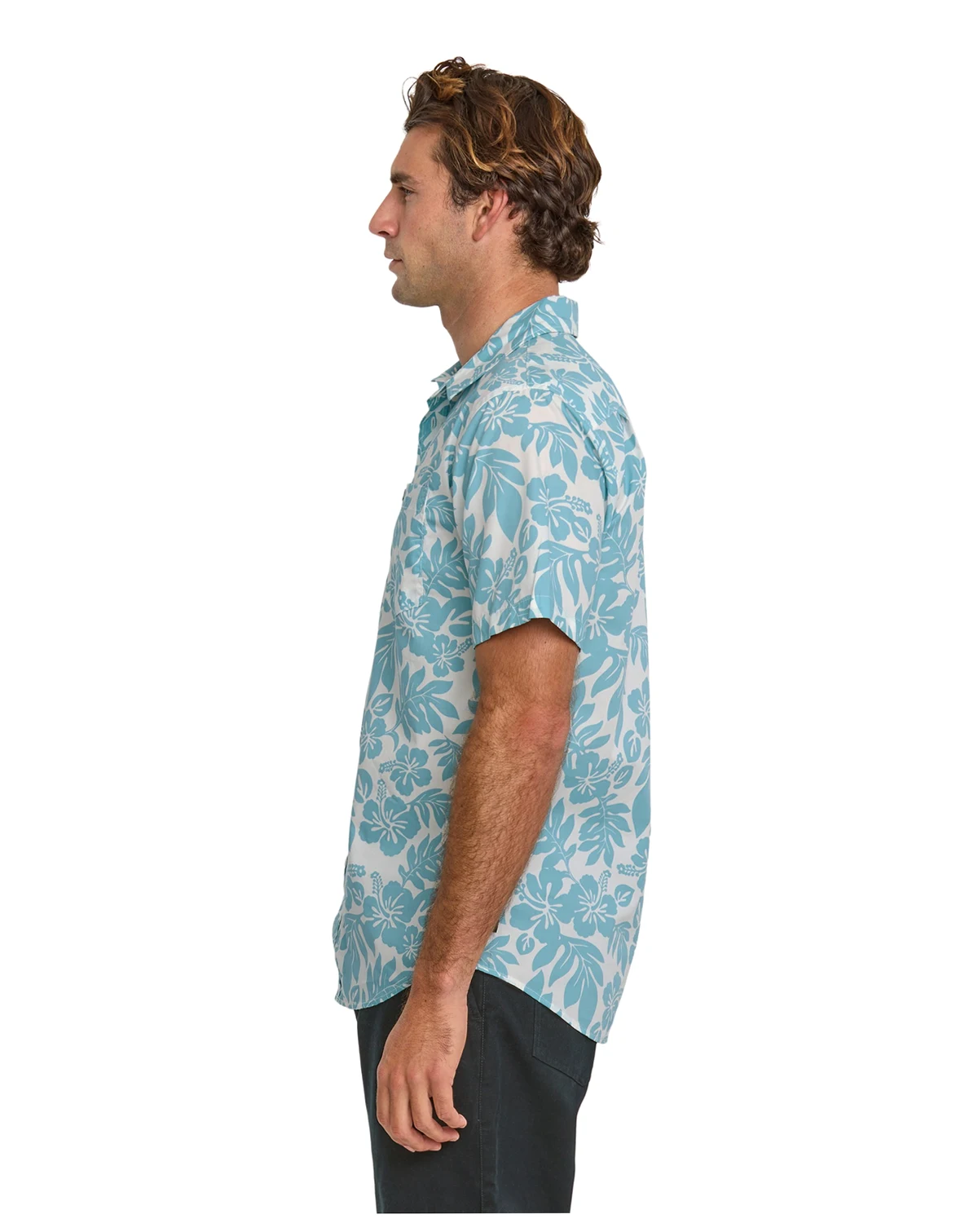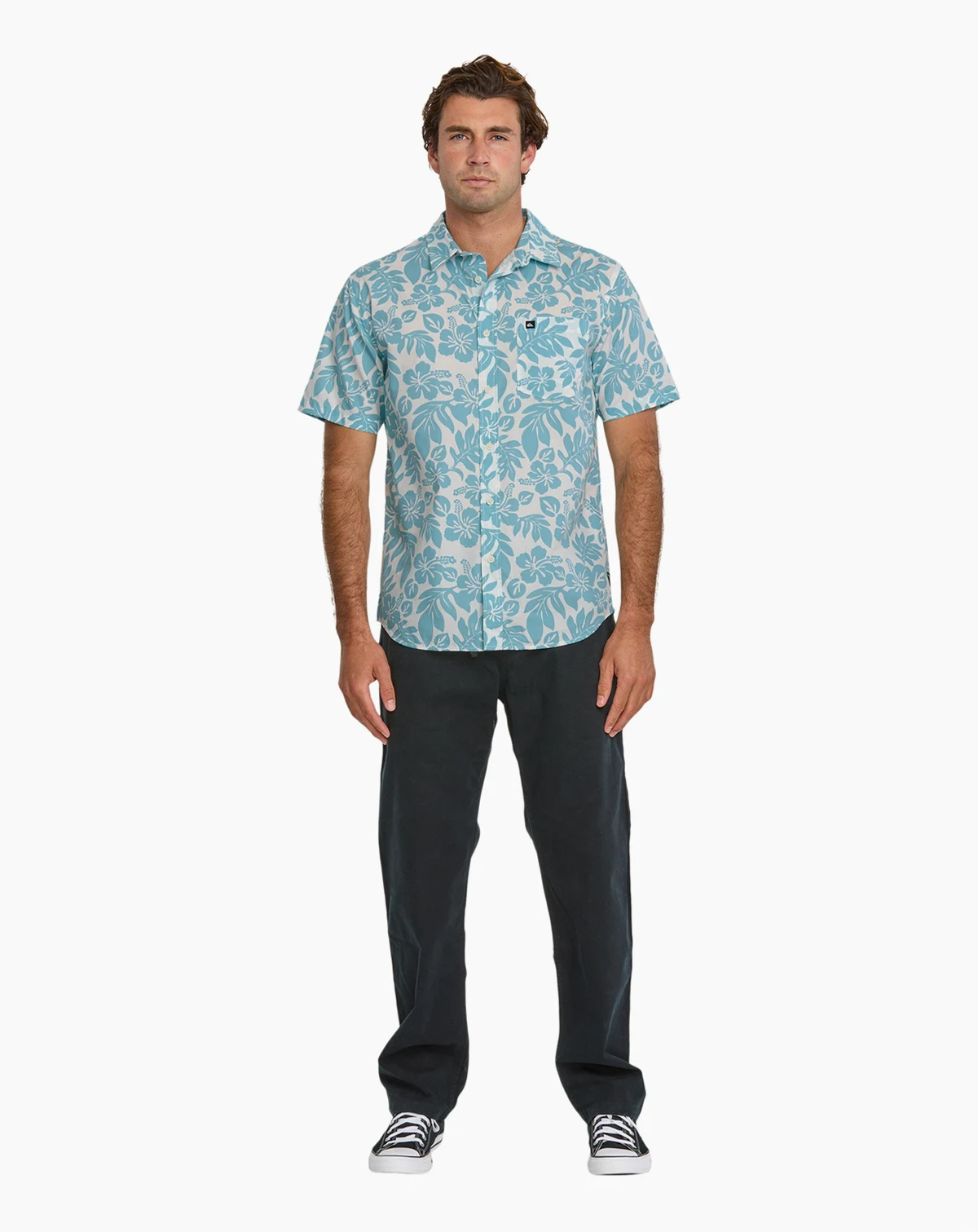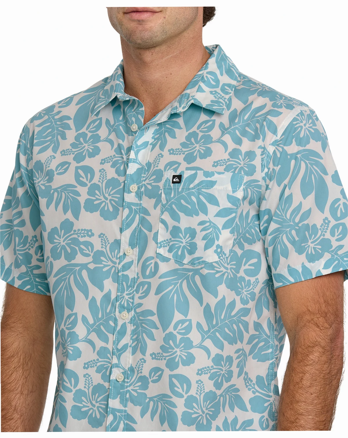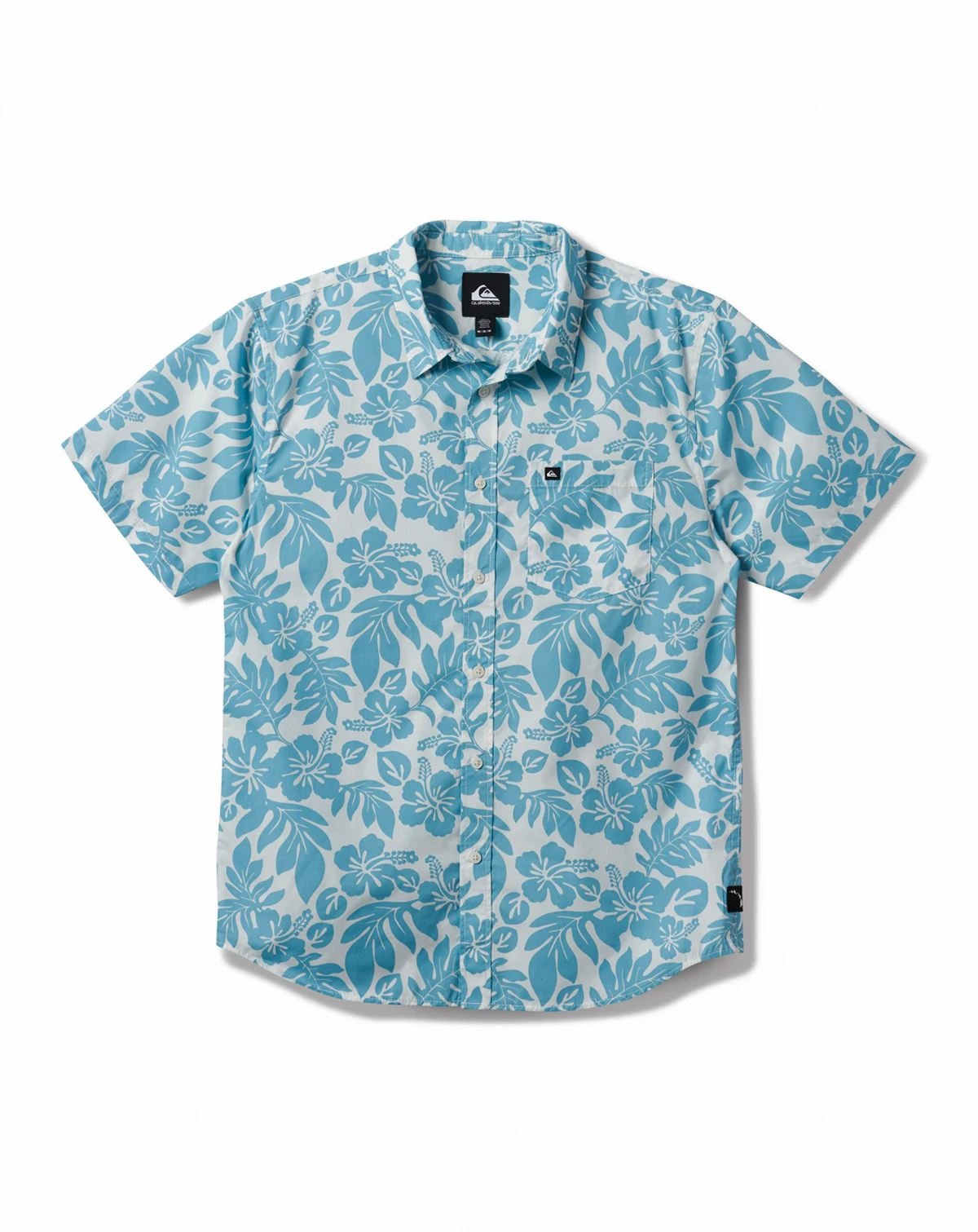 Experience comfort and style with Quiksilver's Short-Sleeve Woven Shirt, featuring a regular fit, classic collar neck, short sleeves, button closure, single chest pocket, and scalloped hem.