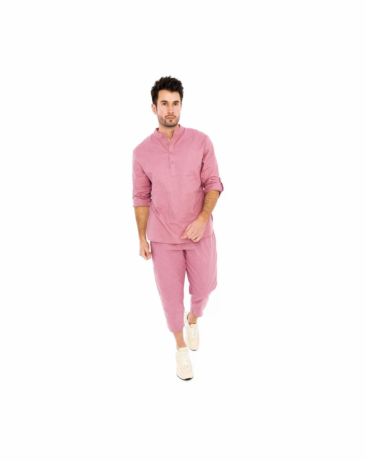 Men's Dai Moda Linen Nehru Collar Shirt with roll tab adjustable sleeves