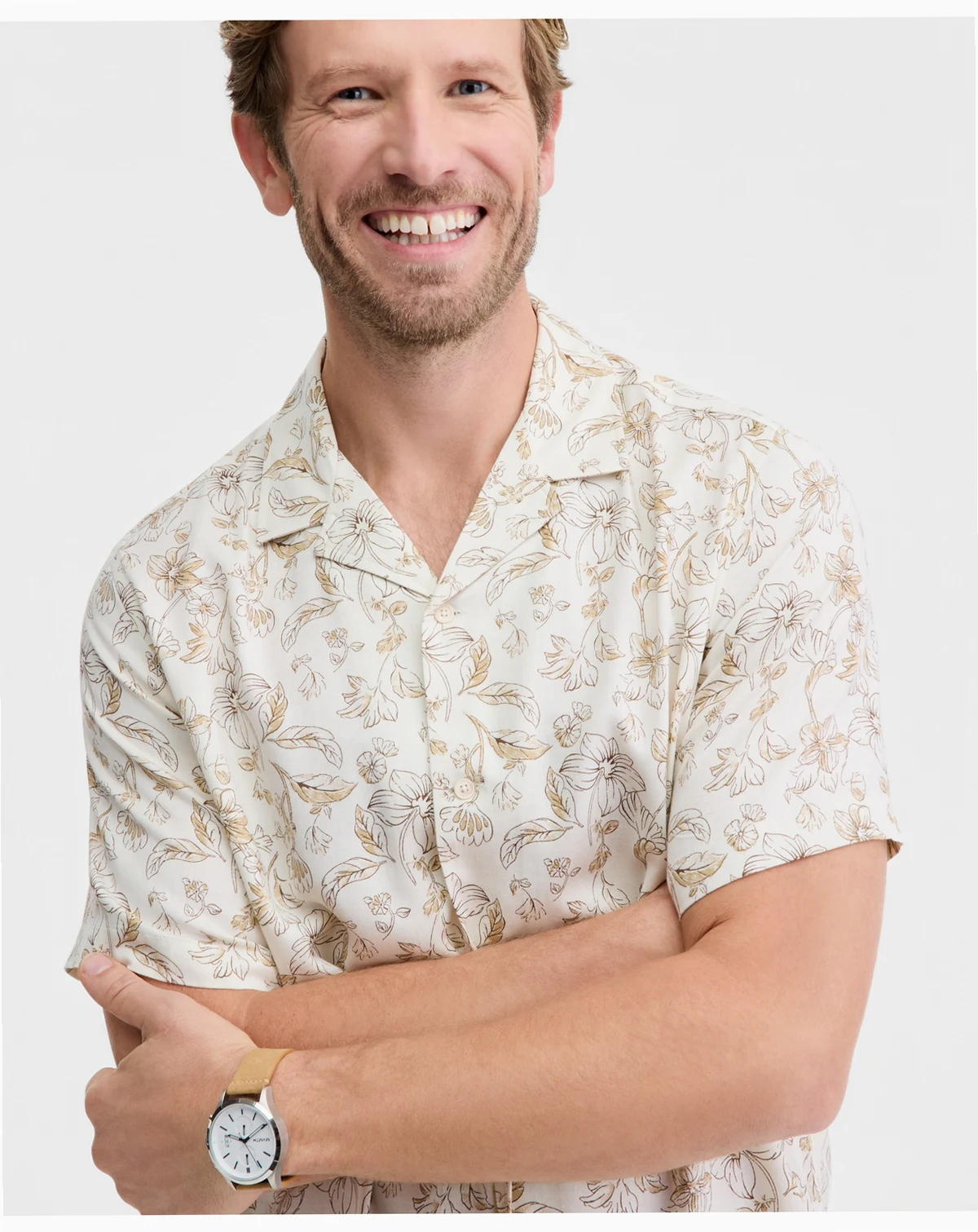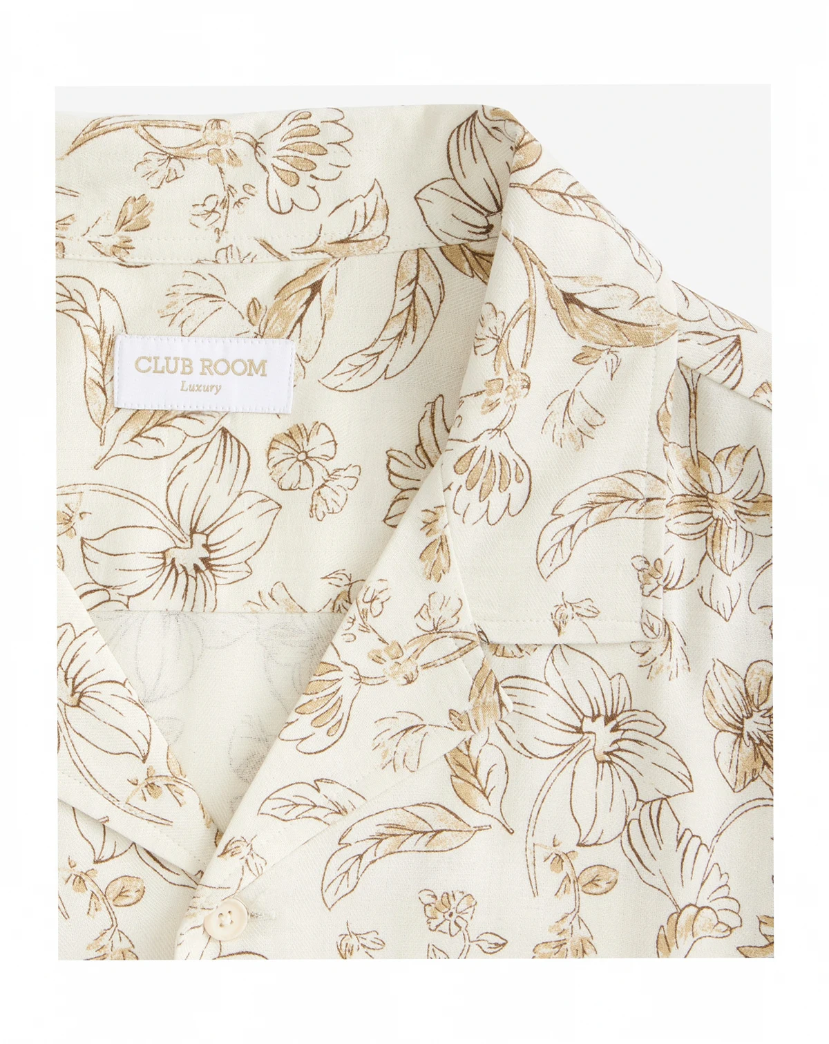 Luxurious in a premium blend of fibers, this Club Room camp shirt updates your look with sophisticated florals in understated tones.