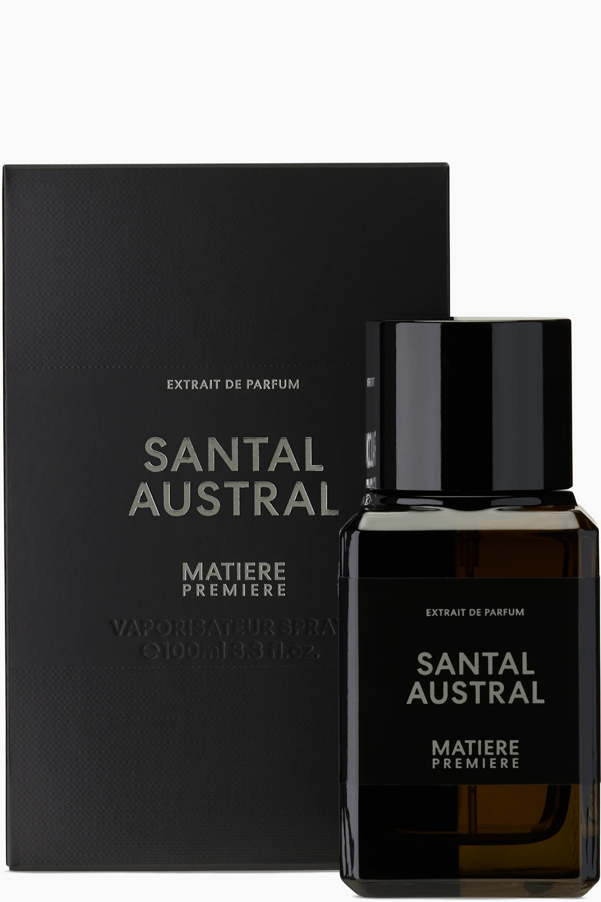 Extrait de parfum spray with smoky and woody scents.