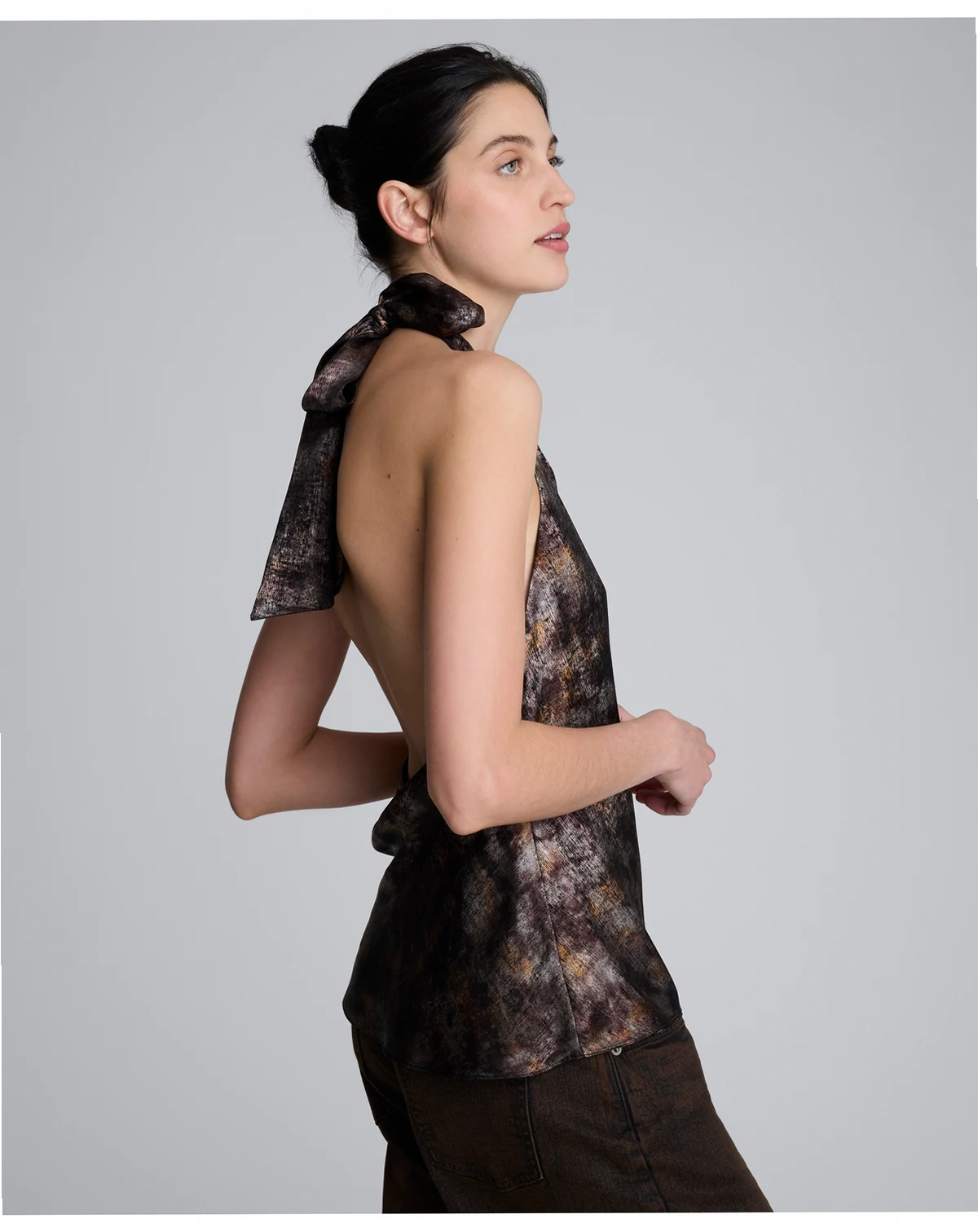 Shine in this Kenneth Cole crossover blouse, featuring a bold foil print for contemporary style. The unlined halter design and sleeveless cut provide comfort and airflow, while the pull-on construction ensures effortless wear during work or social occasions.