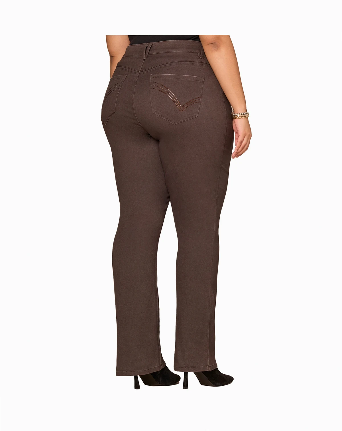 Make a statement with these Democracy boot jeans, featuring a cascading rhinestone detail that adds a striking, eye-catching element. Designed with a flattering high-rise fit, they blend comfort, style, and decorative accents for a standout everyday look.
