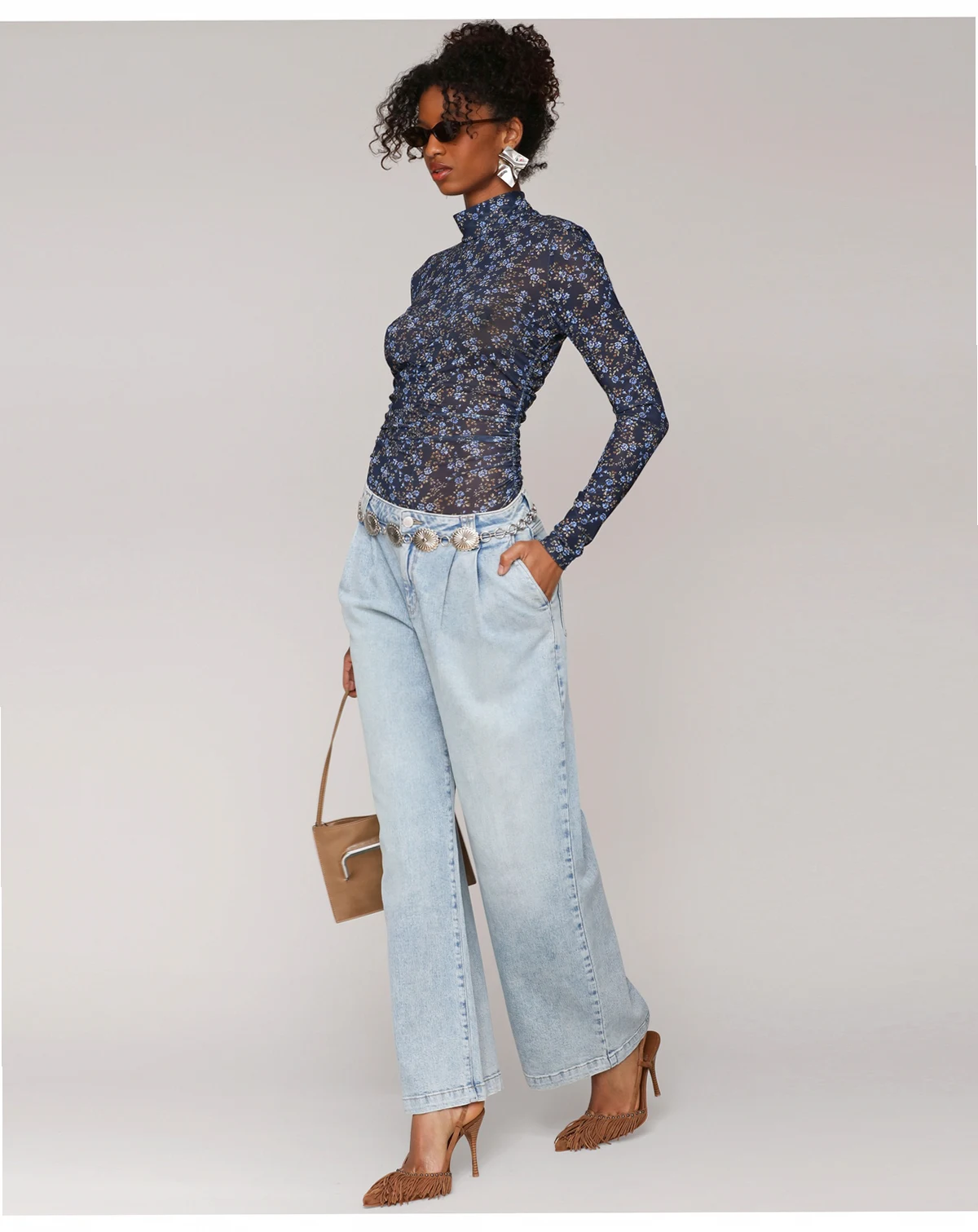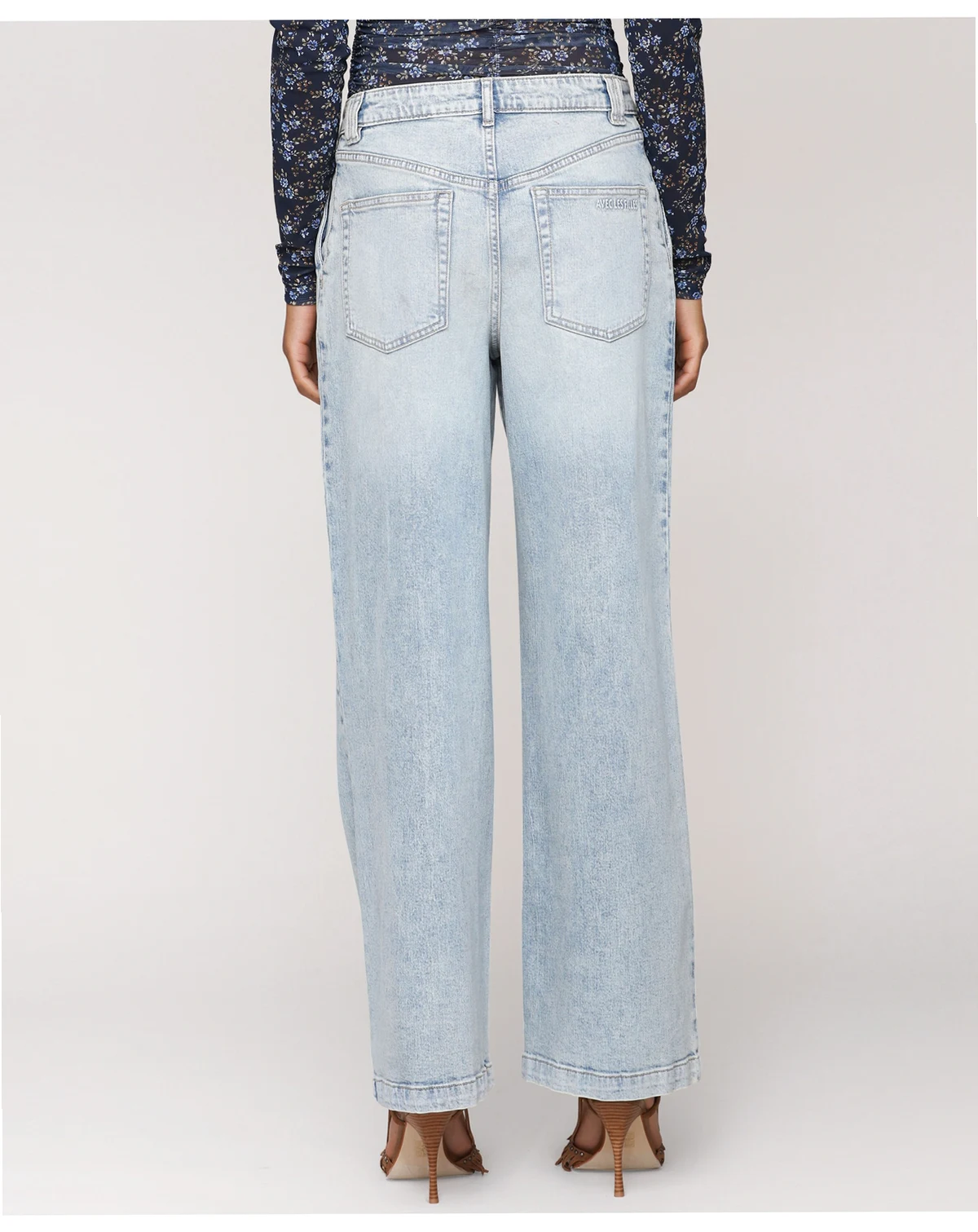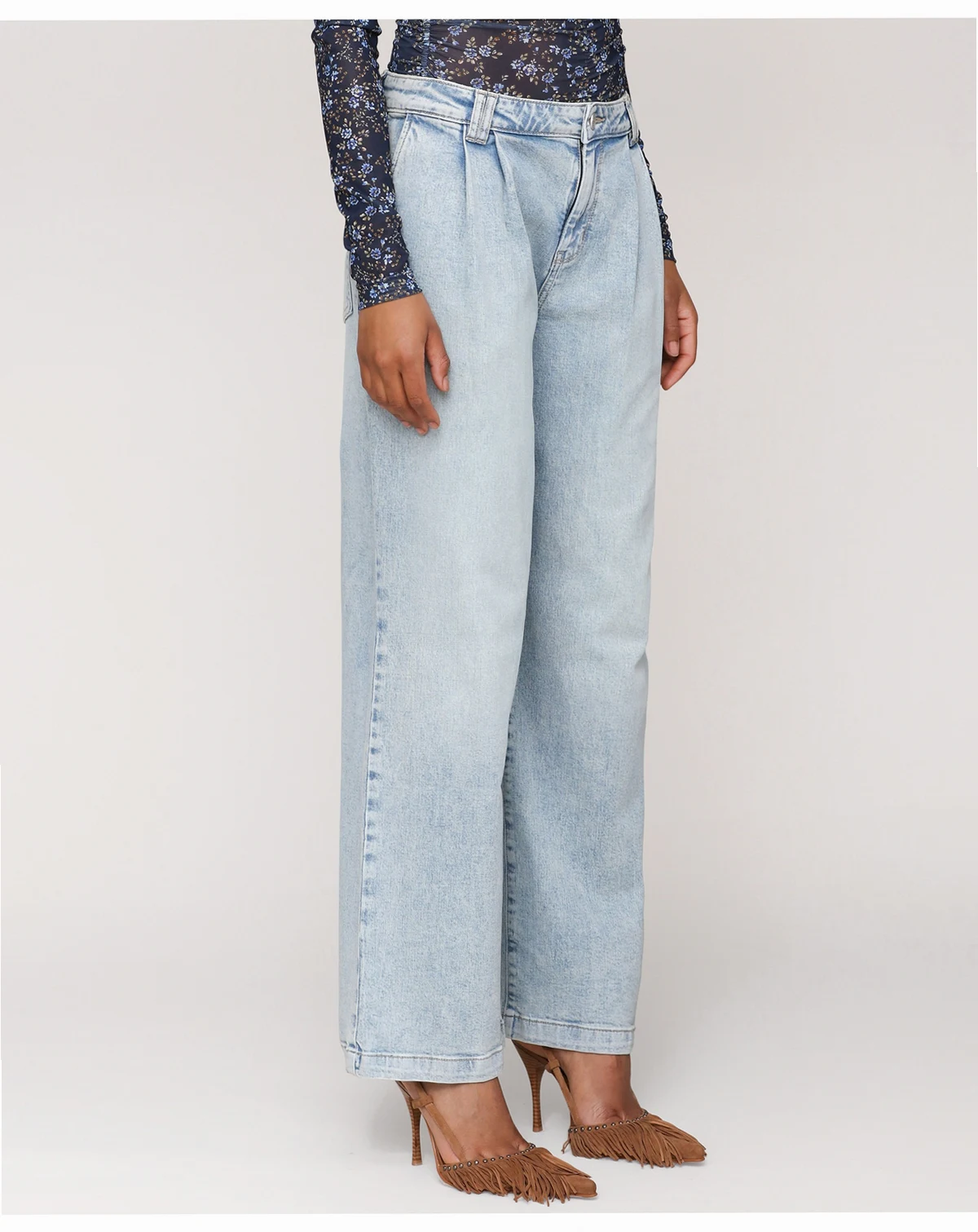 A slouchy wide leg silhouette and polished front pleats perfectly balance Avec Les Filles' jeans, making the high rise design a stylish base for your next outfit.