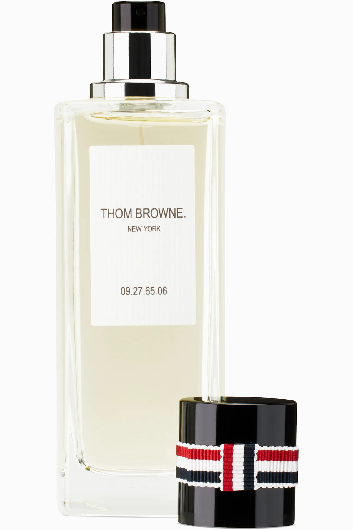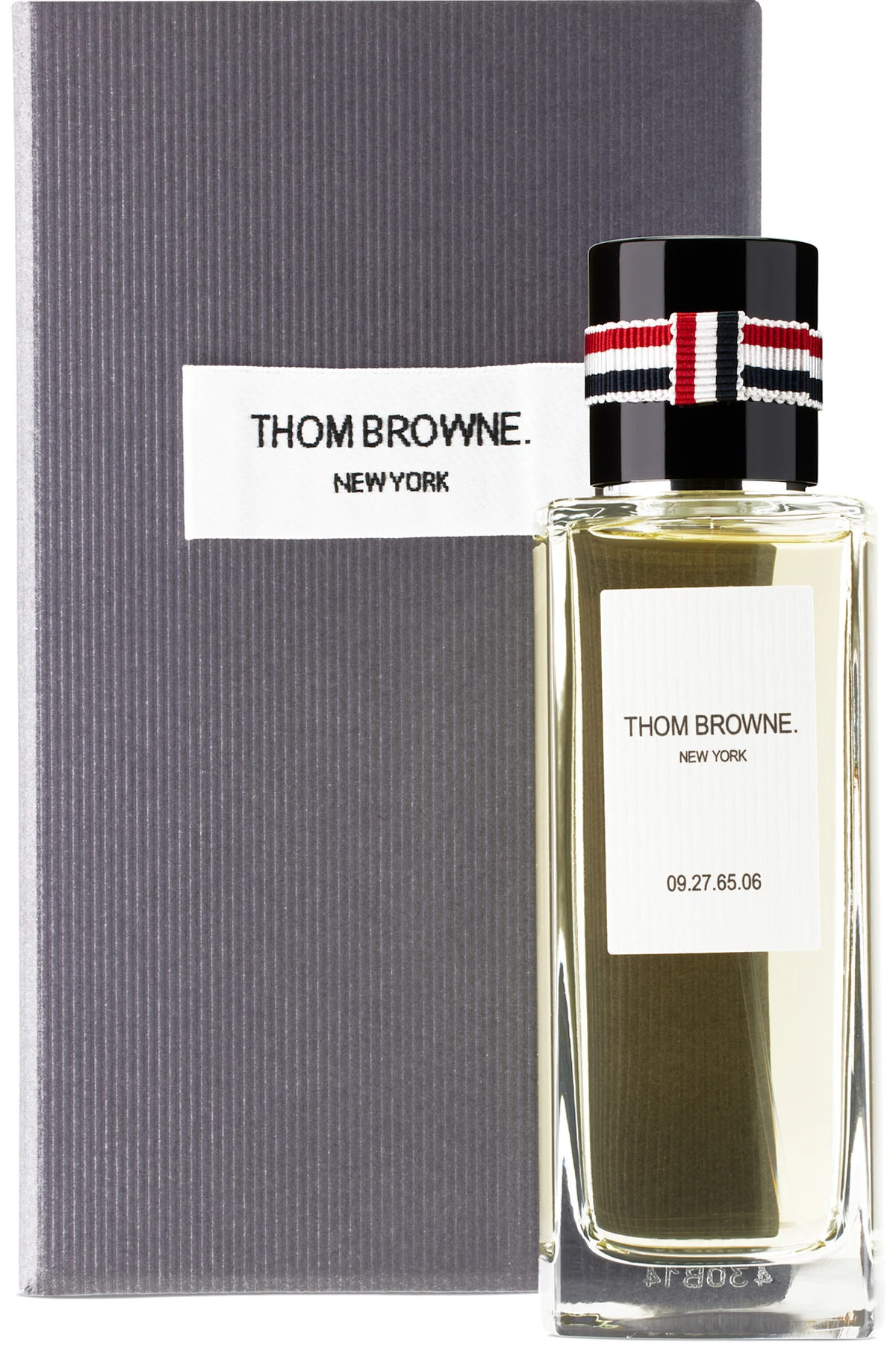 · Base notes: Thom Browne’s vetiver blend, oakmoss absolute, cedarwood absolute, honey accord, black leather