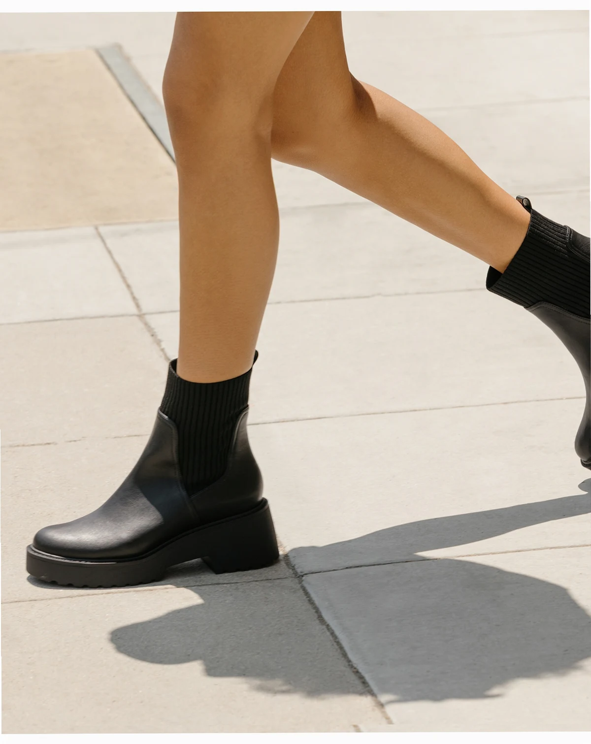 Chunky lug soles are trending right now, and this chic and comfy pair of Chelsea booties by DV Dolce Vita will instantly round out your wardrobe.