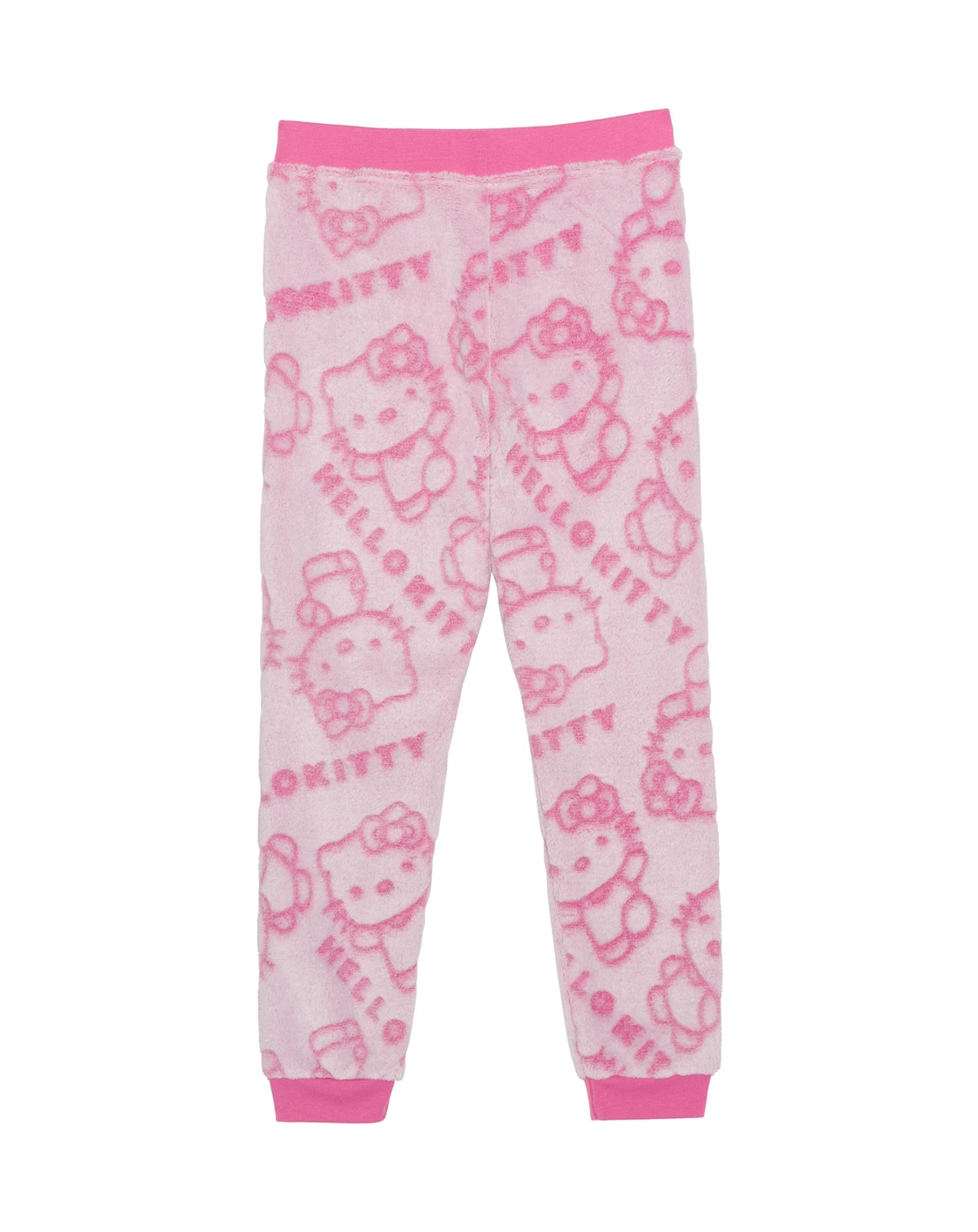 Experience plush comfort with these Hello Kitty jogger pants featuring debossed character details. The pull-on waistband offers easy wearability for various casual occasions and relaxing moments. Tapered cuffs provide a secure fit that maintains warmth during cooler weather. Soft construction ensures comfortable feel against skin throughout wear.