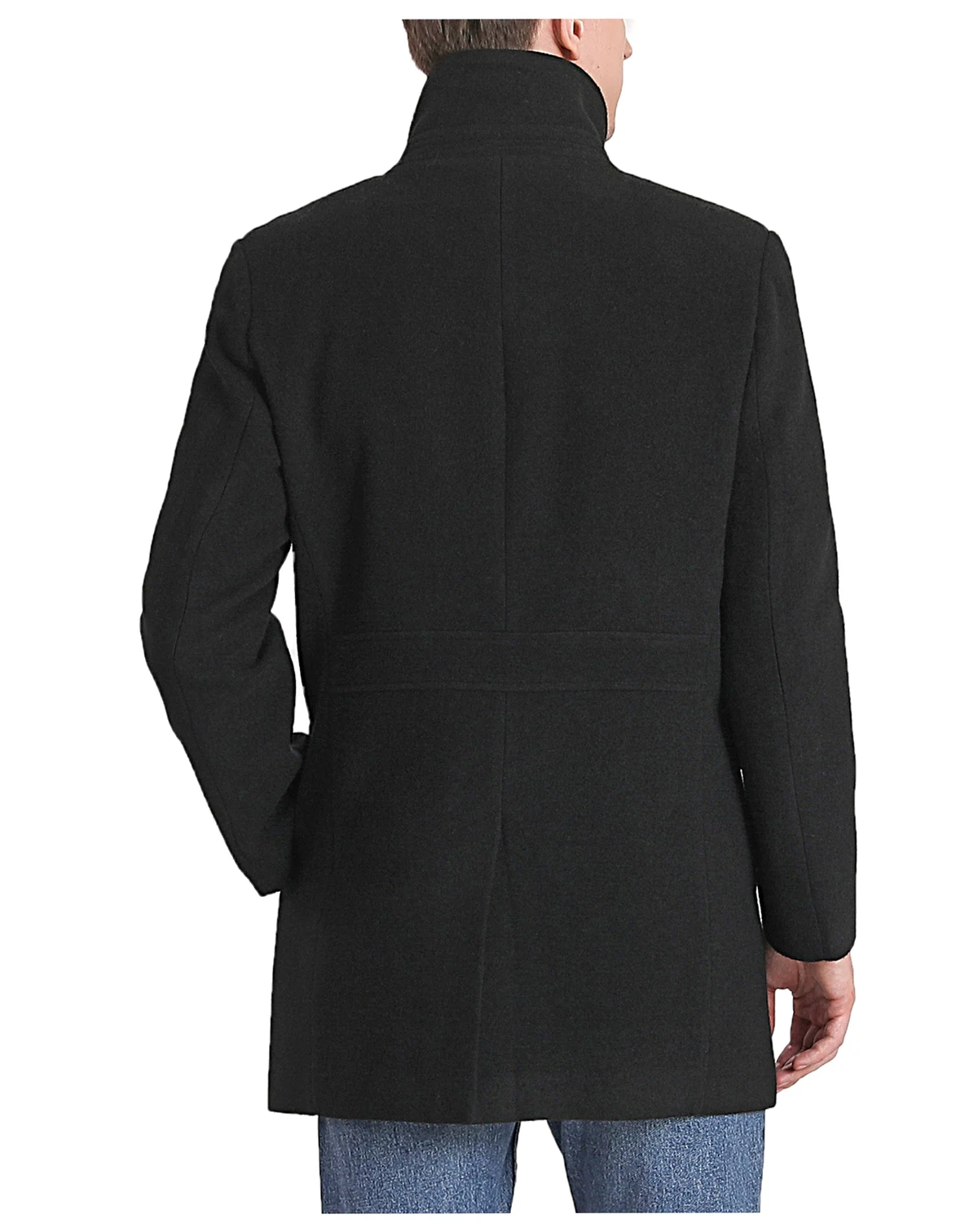 A super modern twist on the iconic double-breasted pea coat, buttons run all the way to the collar to form a high stand collar.