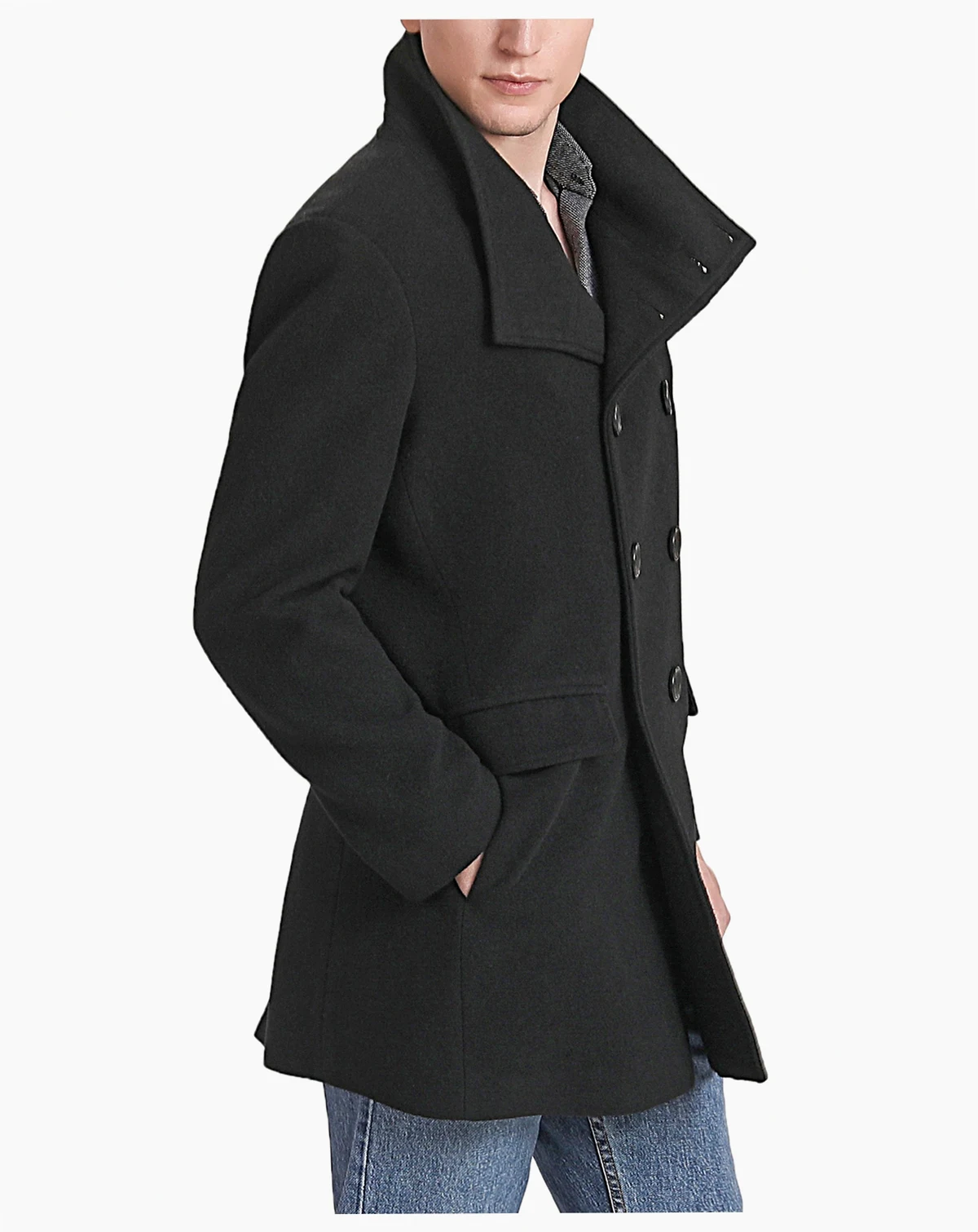 Men Wing Collar City Wool Blend Pea Coat