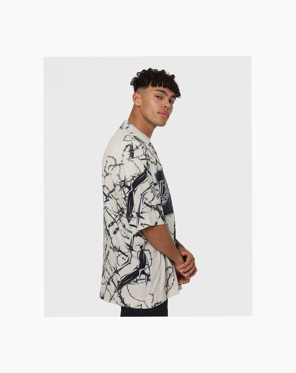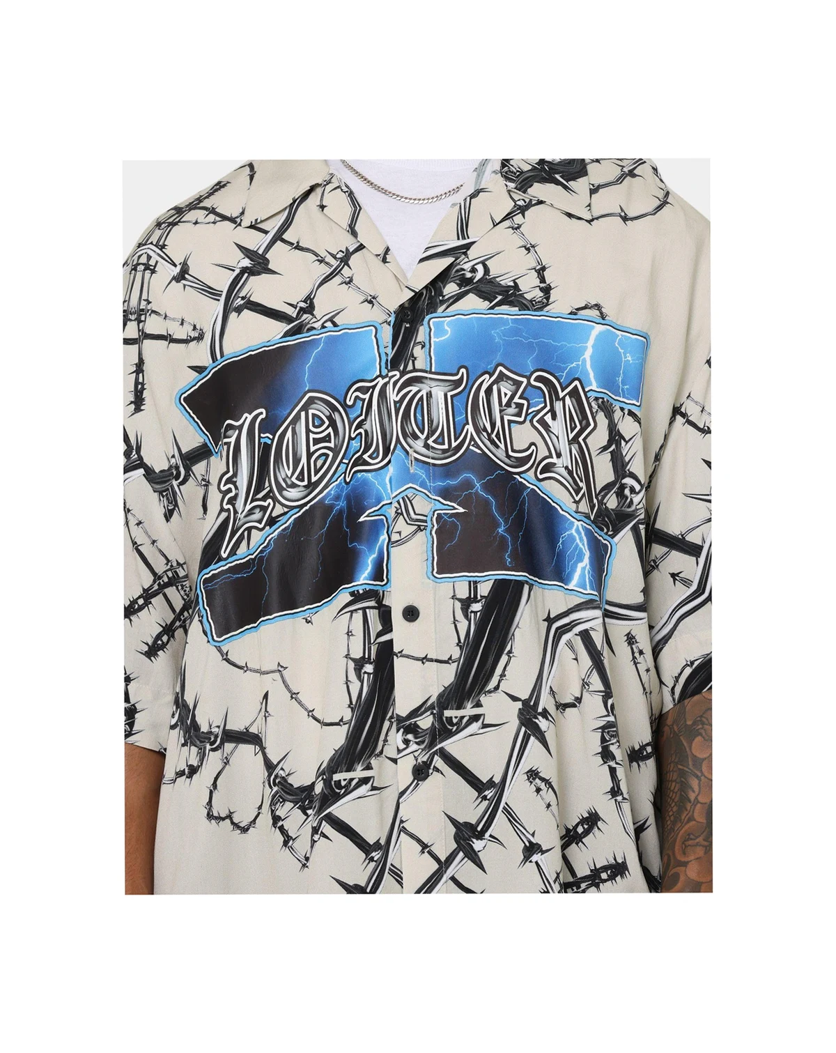 Show your authority and take the lead in streetwear fashion with the Frontline Button Up Shirt from Loiter. Electrifying custom graphics feature on this lightweight button-up, designed to be a versatile piece in your streetwear closet.