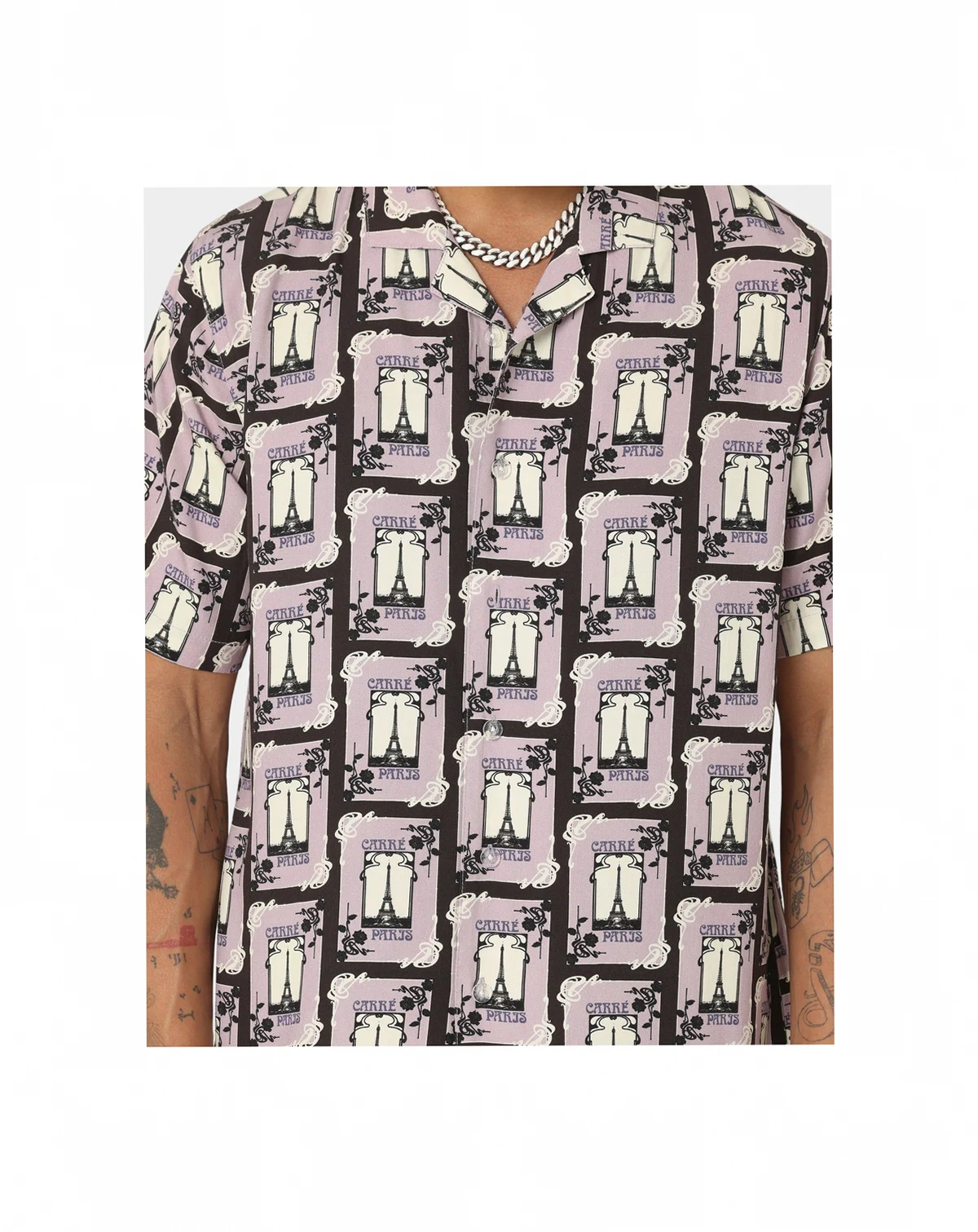 Stand out in the Parisian Rugu Short Sleeve Button Up Shirt. Featuring an all over Eiffel Tower print, a resort collar, and a lux construction. This shirt will elevate any look!