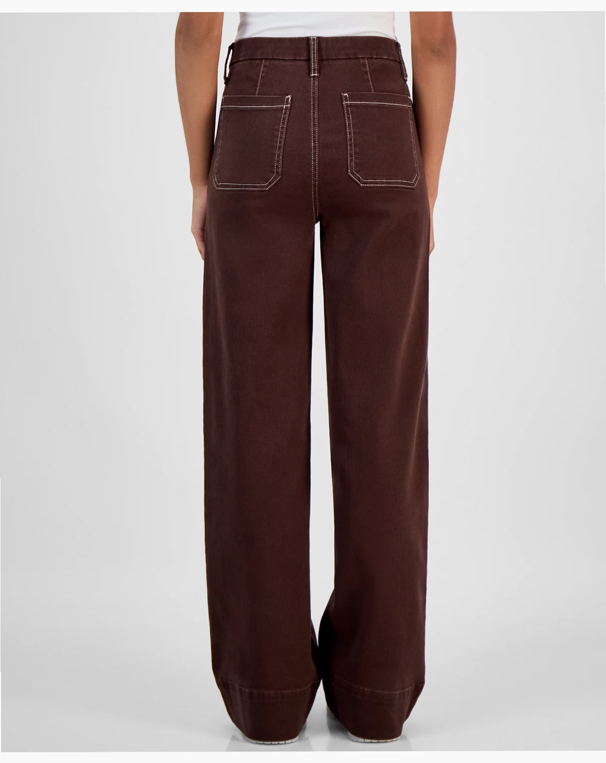 Embrace a fun retro vibe with these cute high-rise wide-leg pants from Celebrity Pink, featuring stylish patch pockets that make them a standout piece.