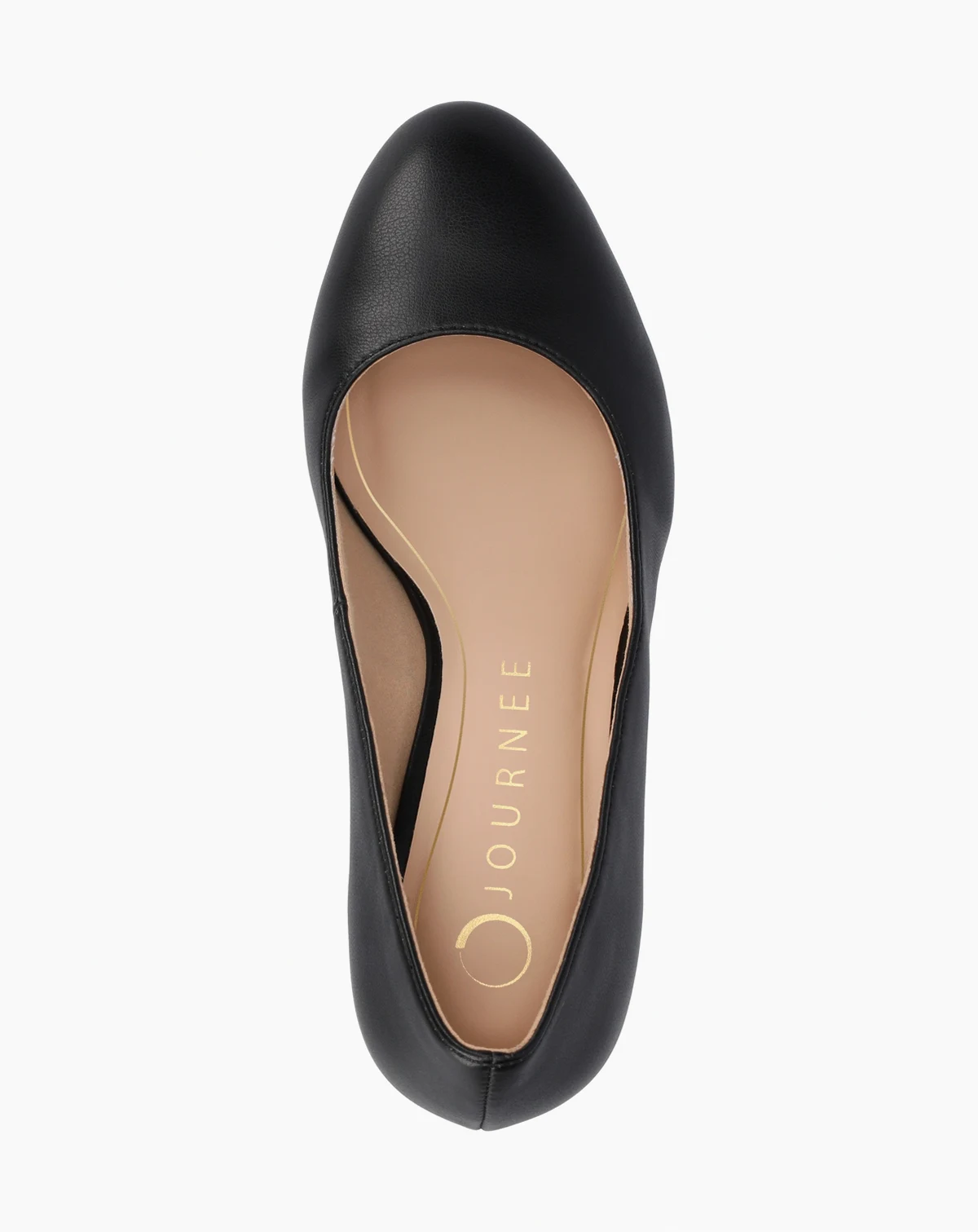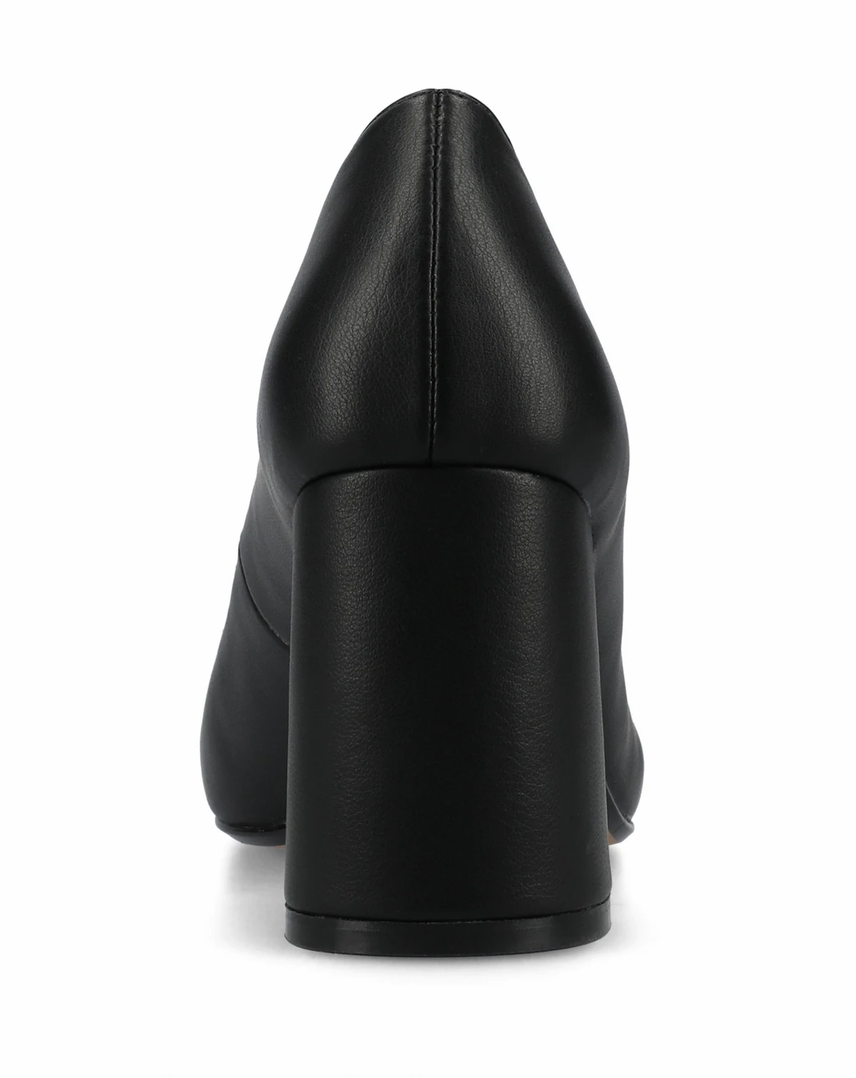 The Seraphina heel from Journee combines effortless style with comfort, featuring a sleek polyurethane slip-on design. Perfect for any kind of wear, this chic heel blends sophistication with ease.
