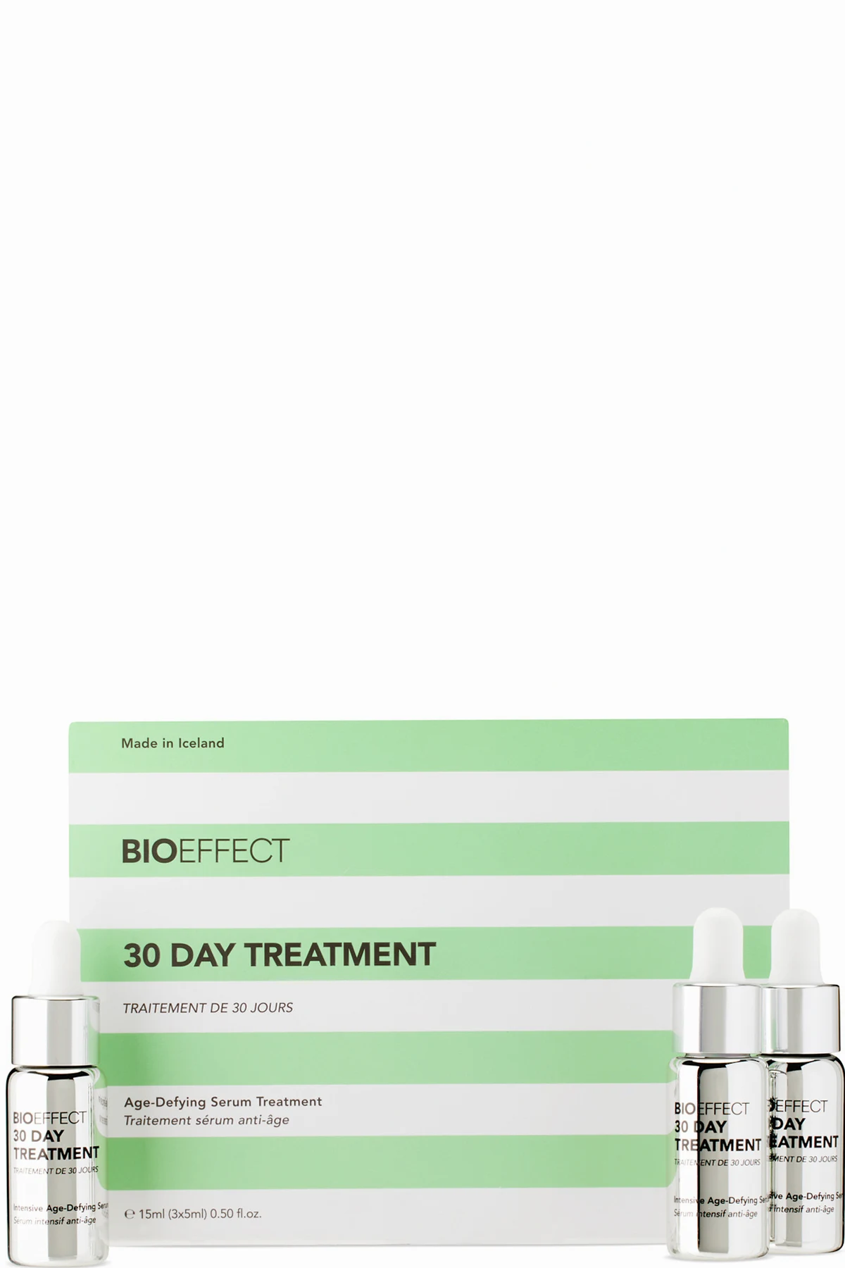 Set of three serums for firming, plumping, and reducing the appearance of fine lines and wrinkles. Features BIOEFFECT EGF, barley KGF, hyaluronic acid, and geologically filtered Icelandic water. Free of oil, fragrance, alcohol, paraben, and gluten. Vegan and cruelty-free.