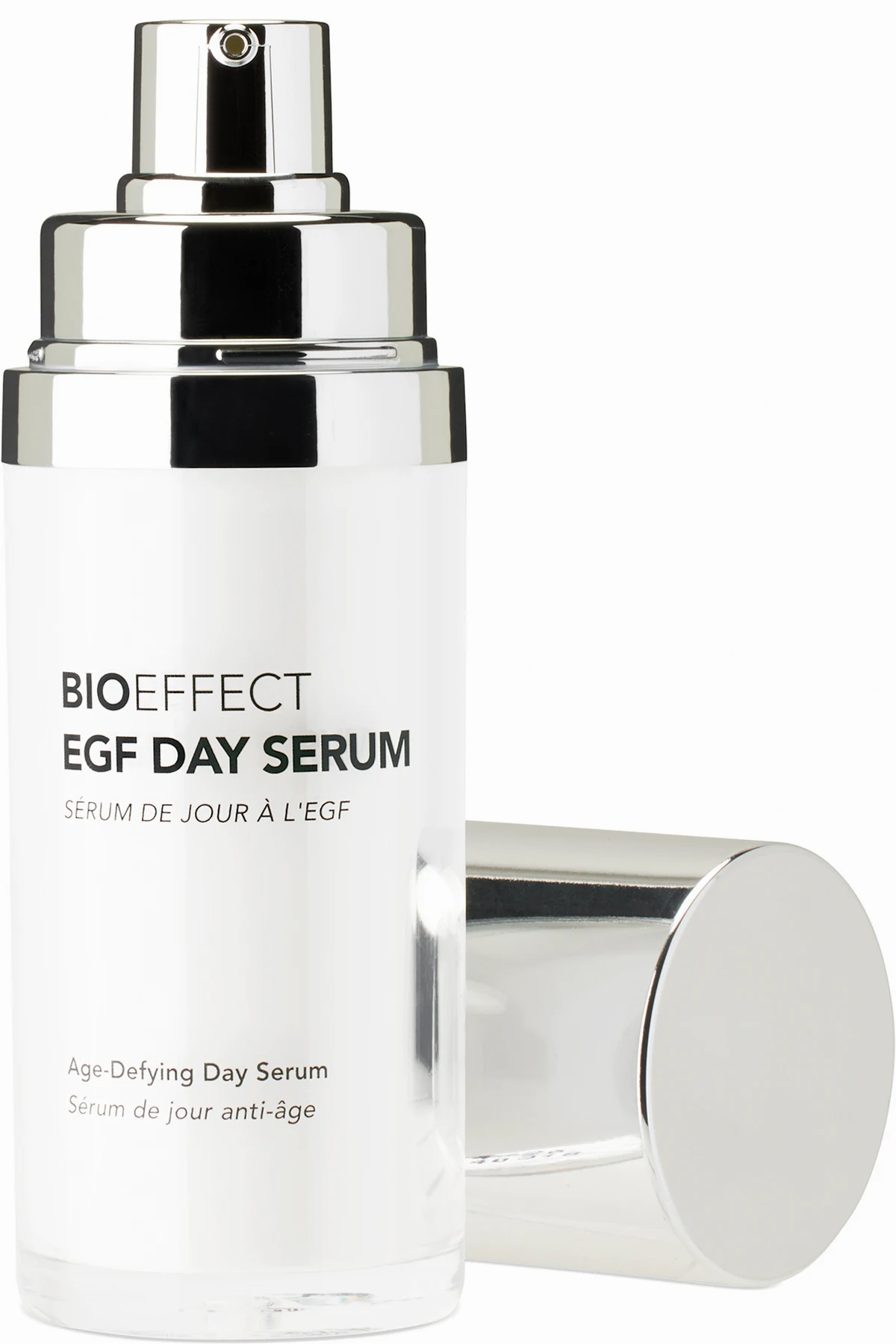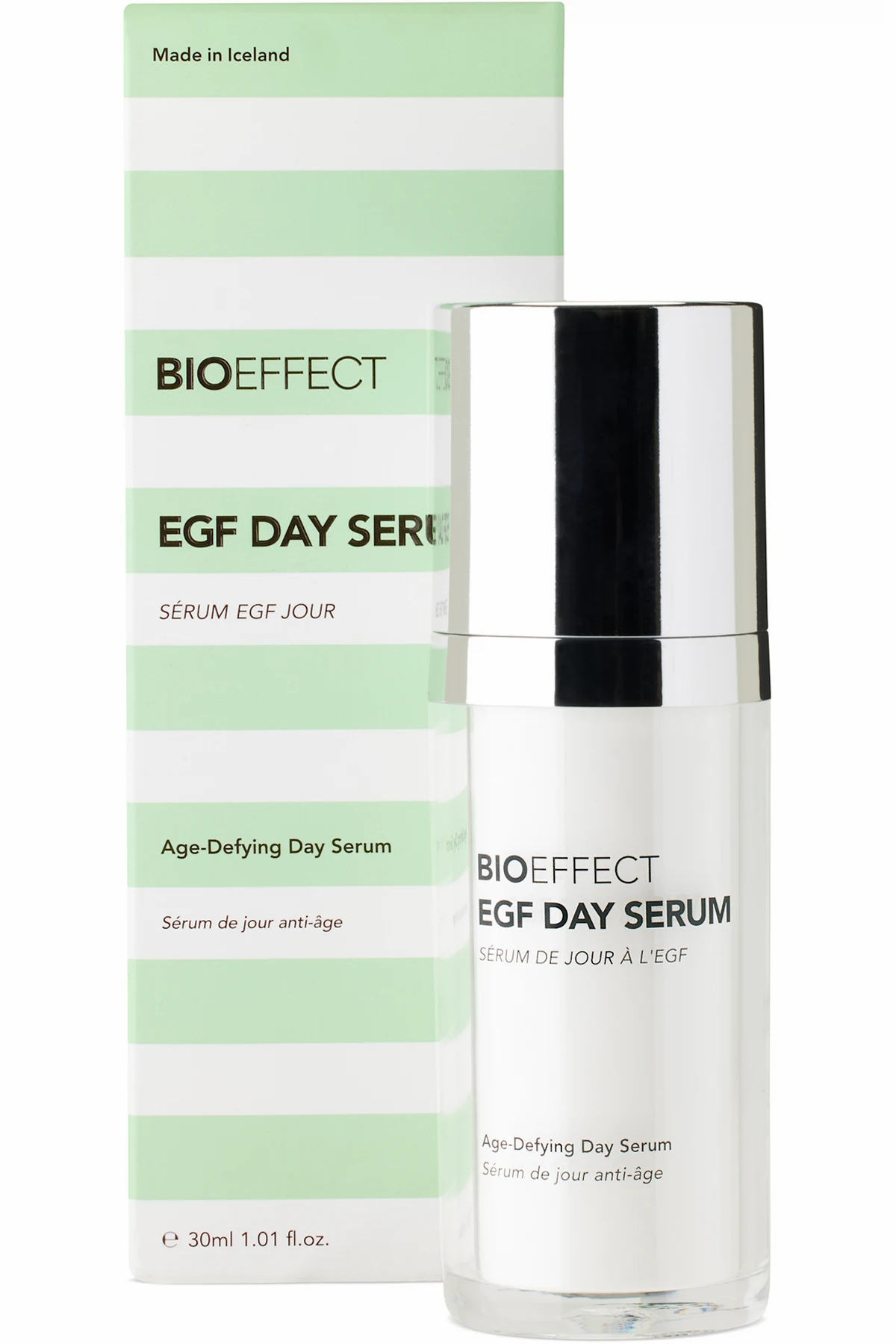 Serum for evening skin tone and reducing the appearance of fine lines and wrinkles. Features BIOEFFECT EGF, hyaluronic acid, geologically filtered Icelandic water, and glycerin. Vegan, cruelty-free, and gluten-free.