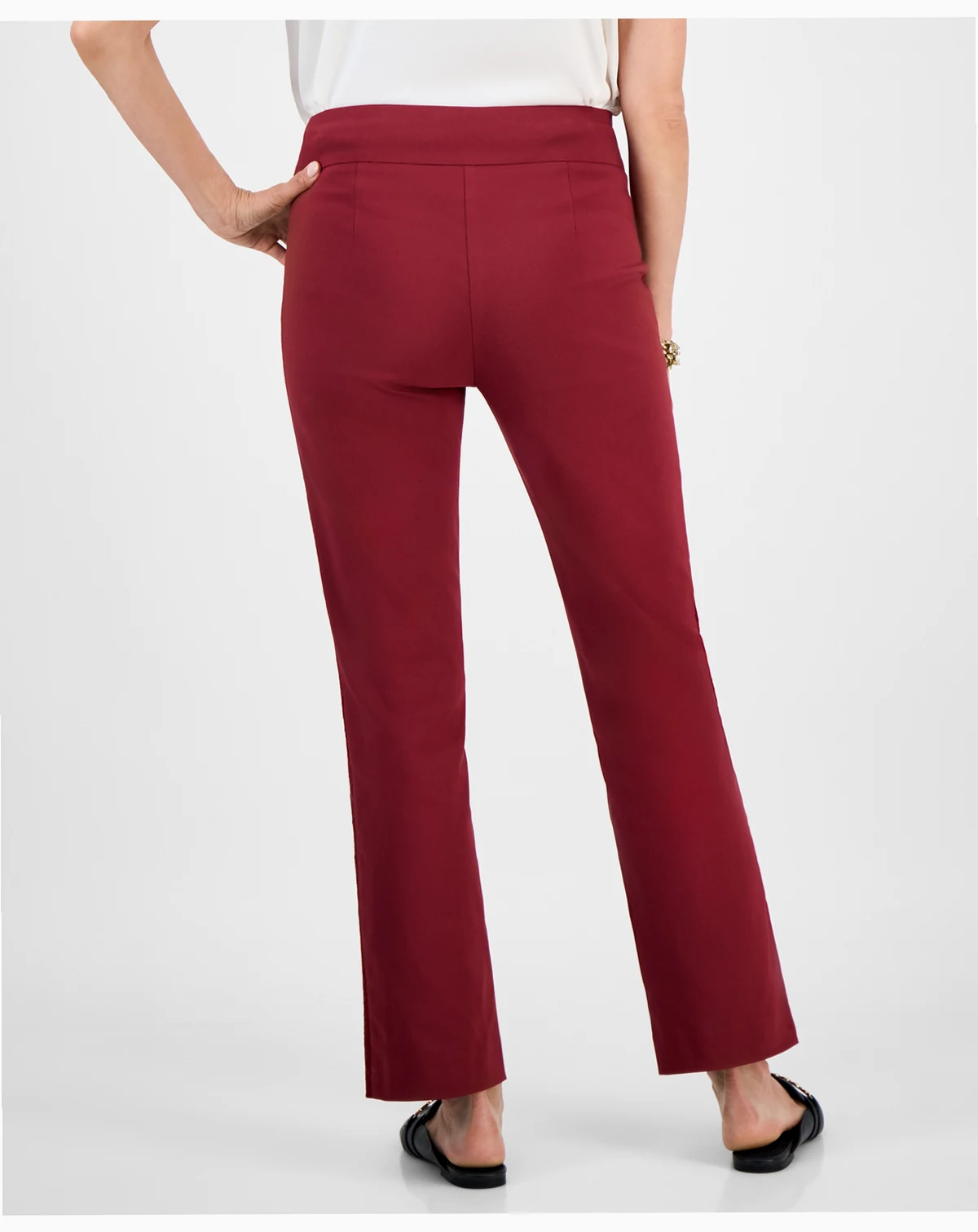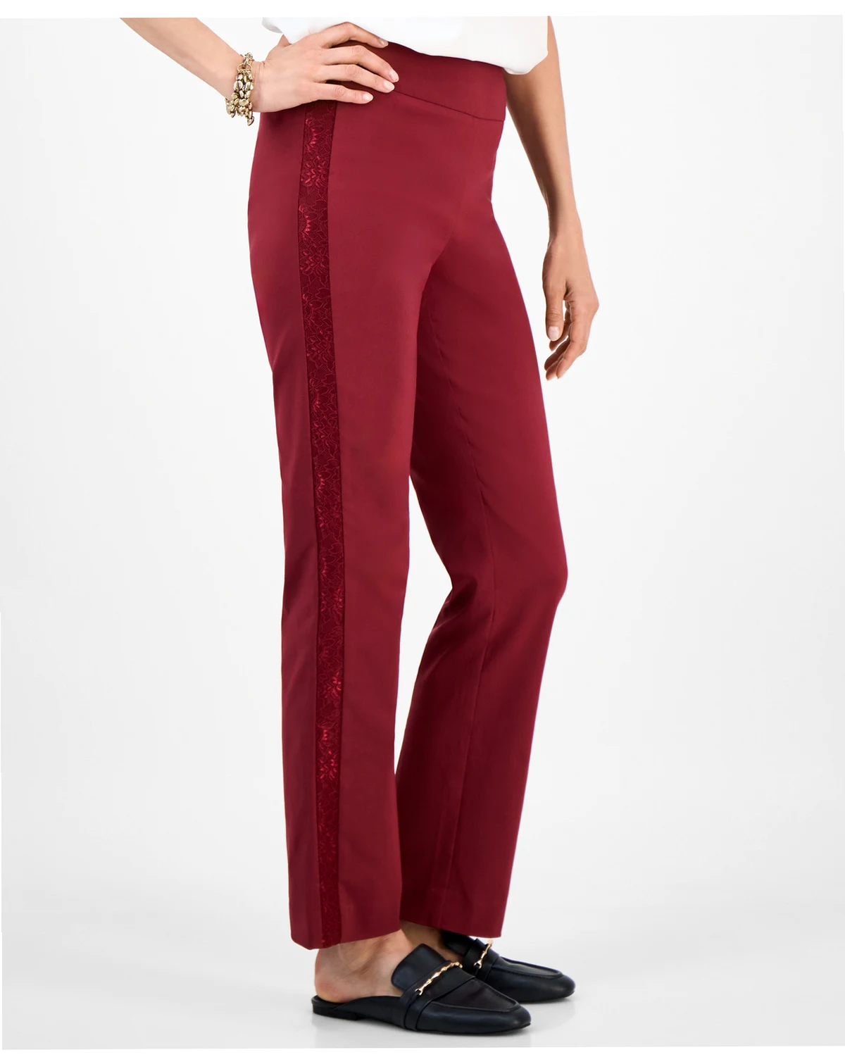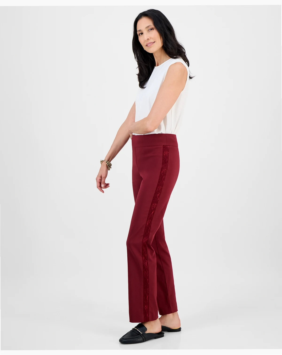 A dressier take on the classic pull-on trouser, this pair of pants from JM Collection features tonal lace stripes down the sides.