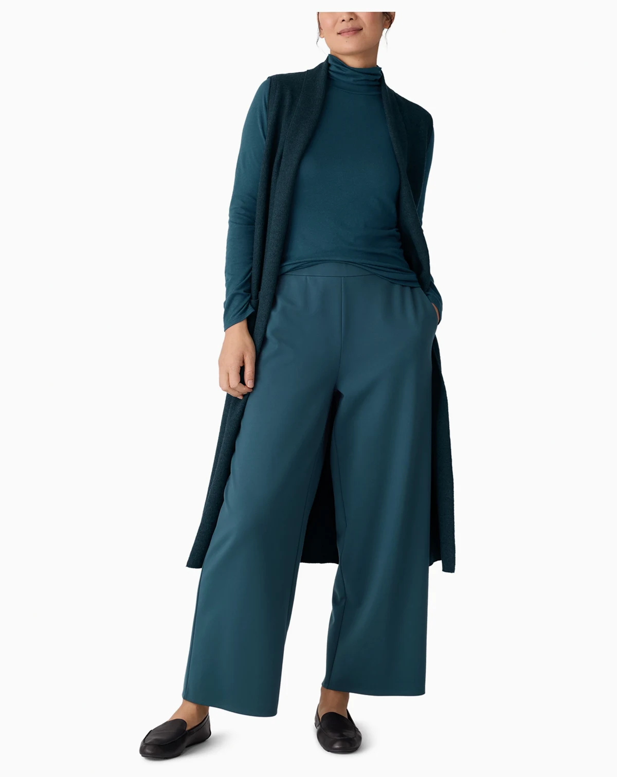 Experience understated elegance in these ankle-length pants by Eileen Fisher. Designed with a pull-on waistband, they provide a smooth, secure fit without fuss. The generous wide-leg design creates a fluid, graceful silhouette, and the cropped ankle length adds a contemporary touch that pairs seamlessly with any footwear.