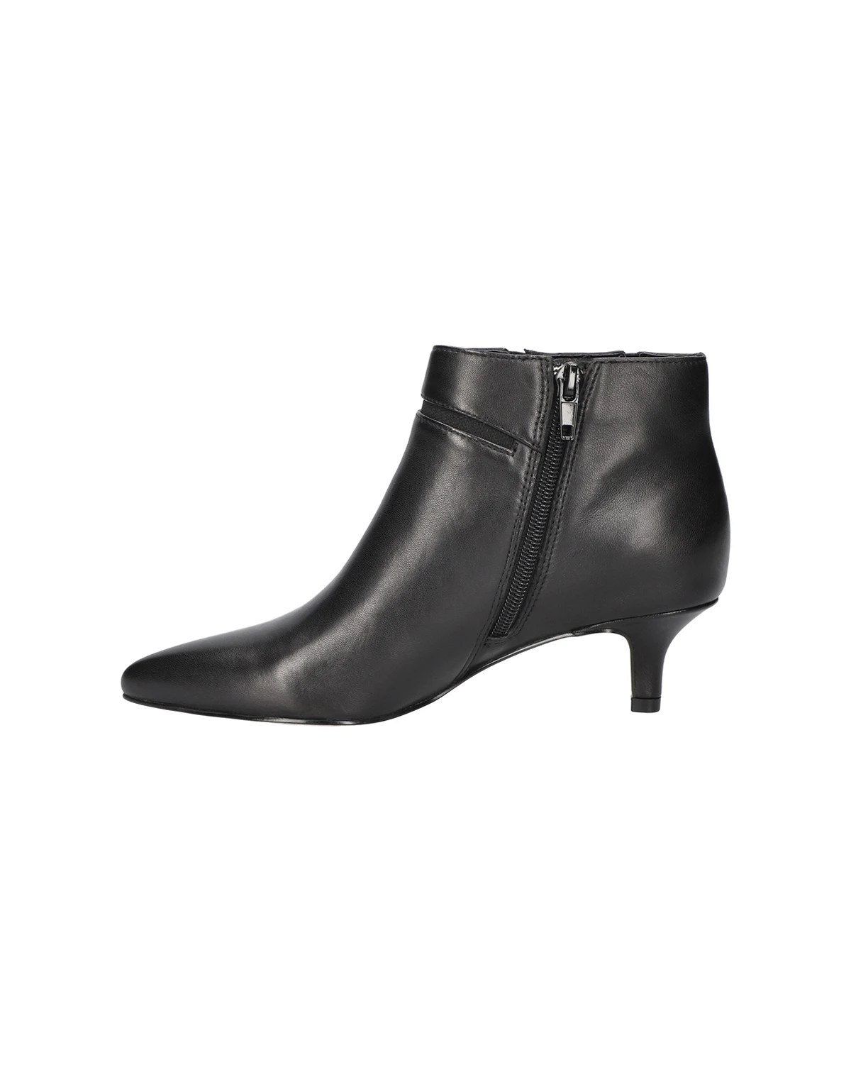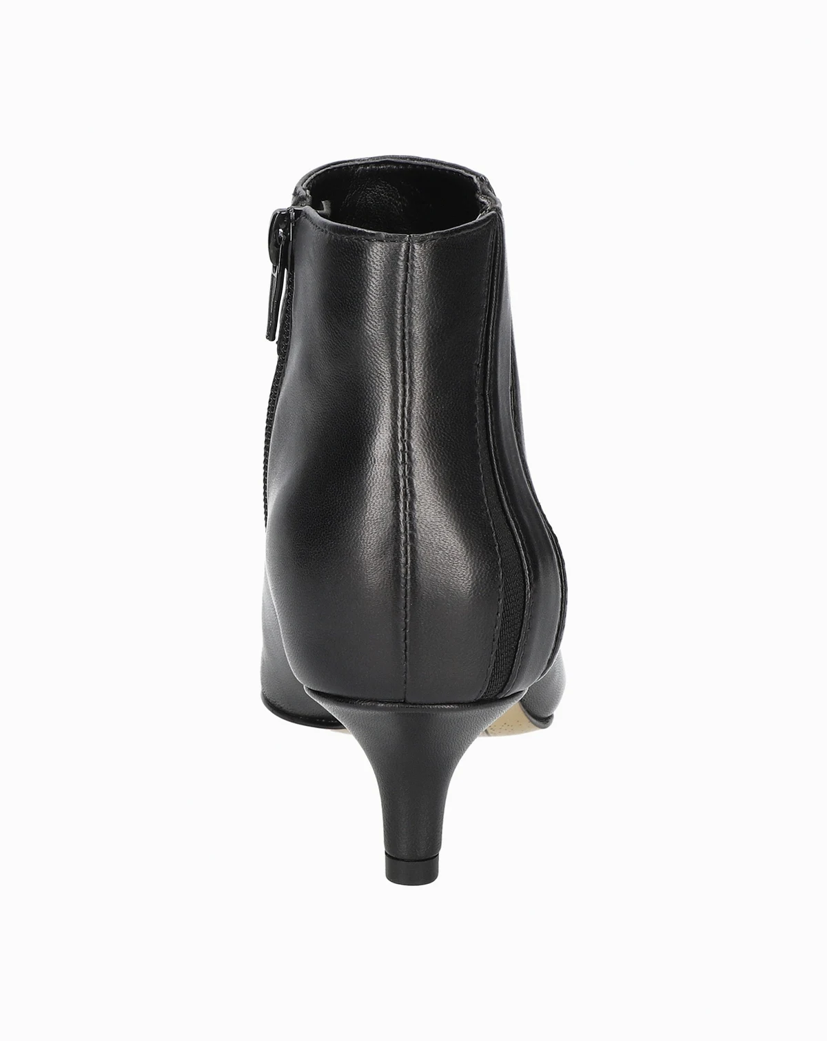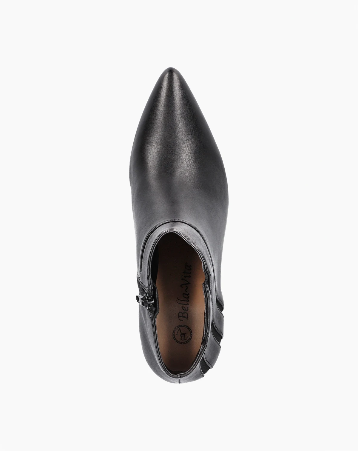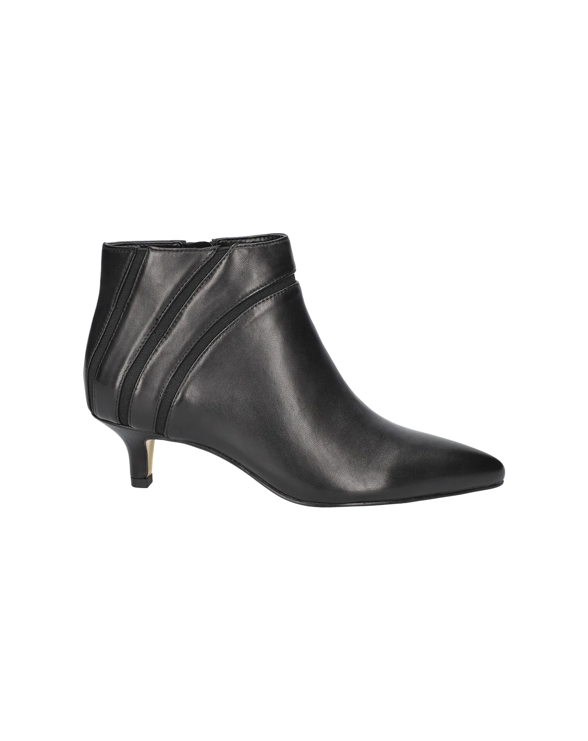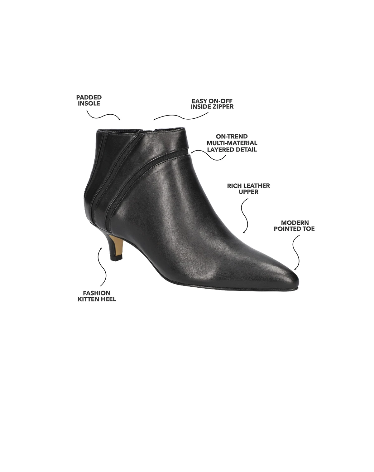 Find the perfect balance of simplicity and sophistication with the Faraday by Bella Vita contemporary leather dress shootie. Its pointed-toe design radiates timeless elegance, while the on-trend kitten heel brings a modern touch that is both practical and stylish. The padded insole provides added comfort, and the inside zipper offers an easy on/off. Elevate any dress outfit effortlessly with this boot.
