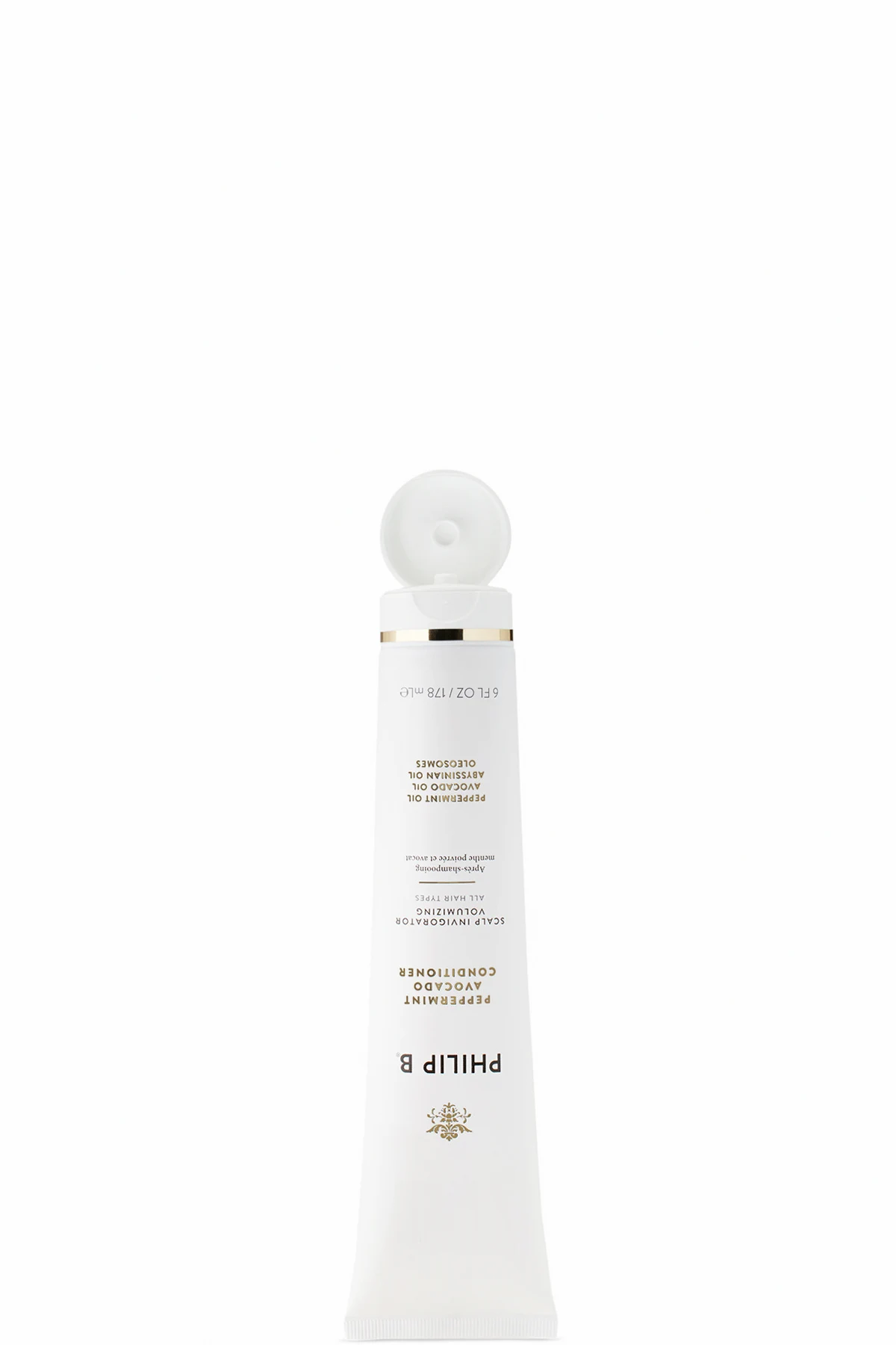 A volumizing conditioner for moisturizing the scalp, detangling, and uplifting hair. Features peppermint oil, safflower oleosomes, amino acids, and avocado oil.