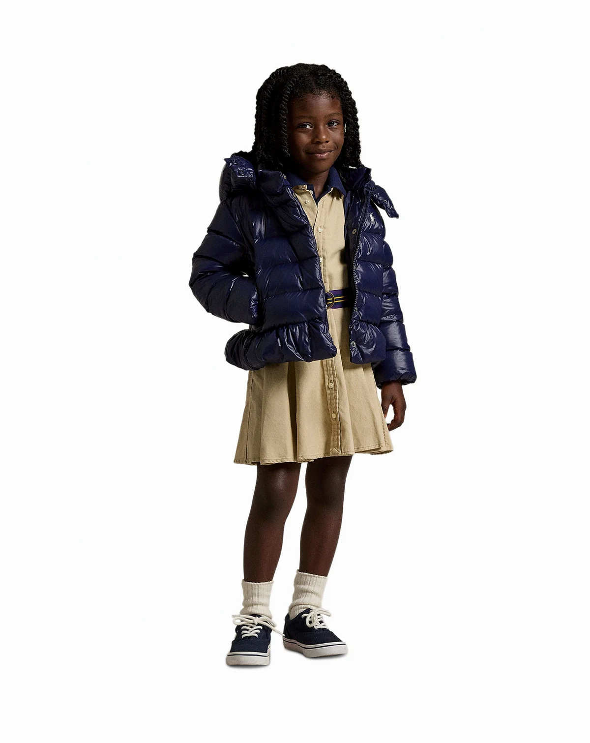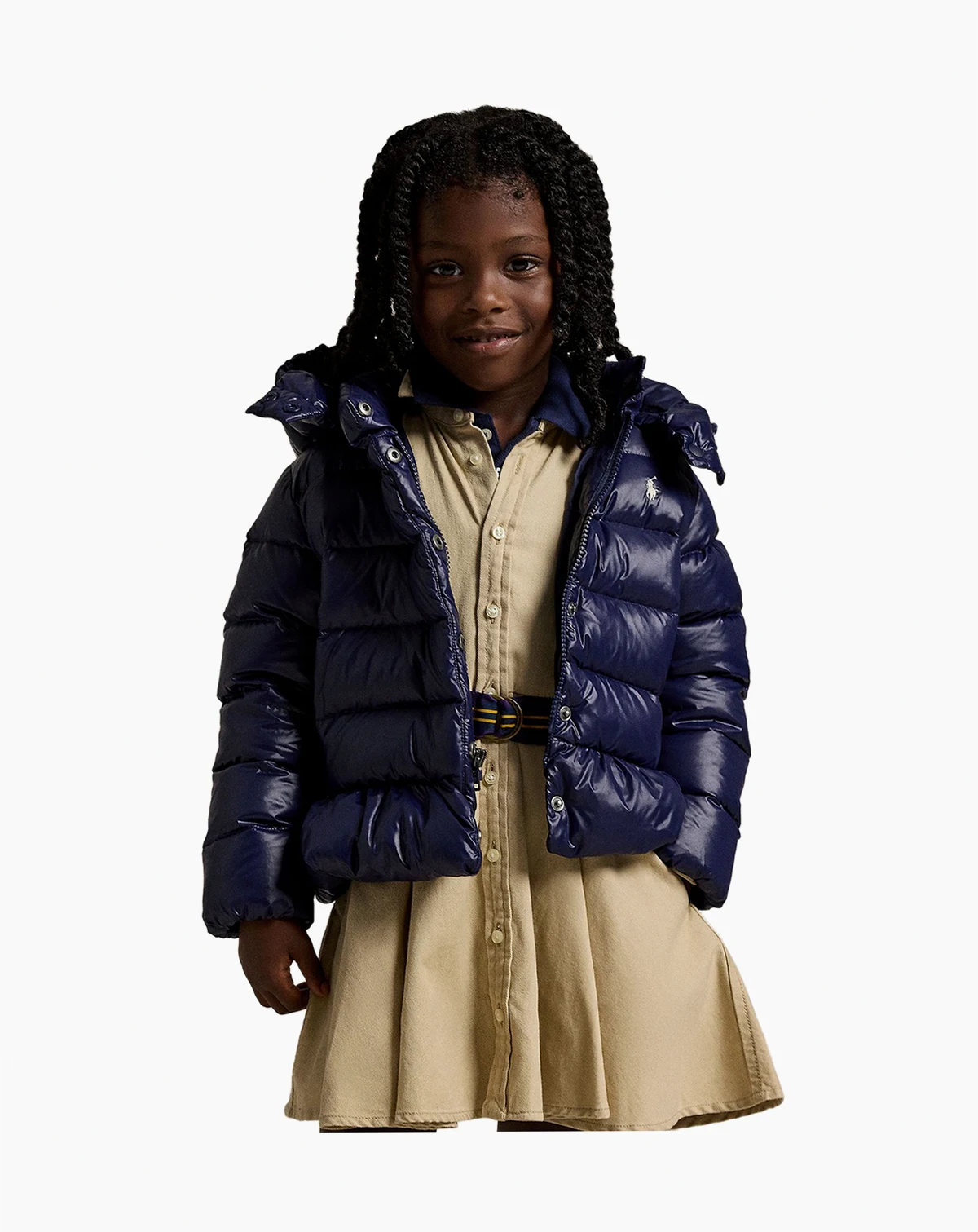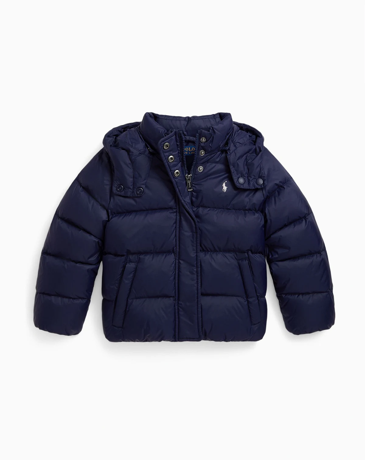 Adventure-ready charm meets effortless practicality in this Polo Ralph Lauren jacket. The high mock neck provides added insulation, complemented by a removable hood for flexible styling. Two handy pockets store little necessities, and the zip closure delivers easy wearability. Its water-repellent shell helps her face drizzle and damp conditions without worry.