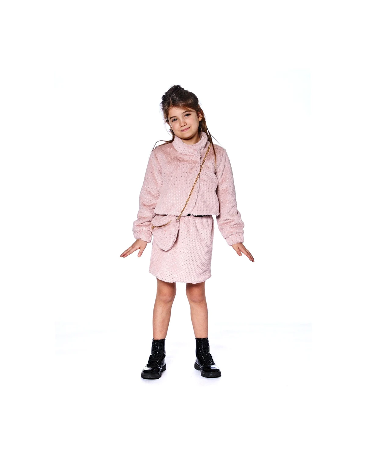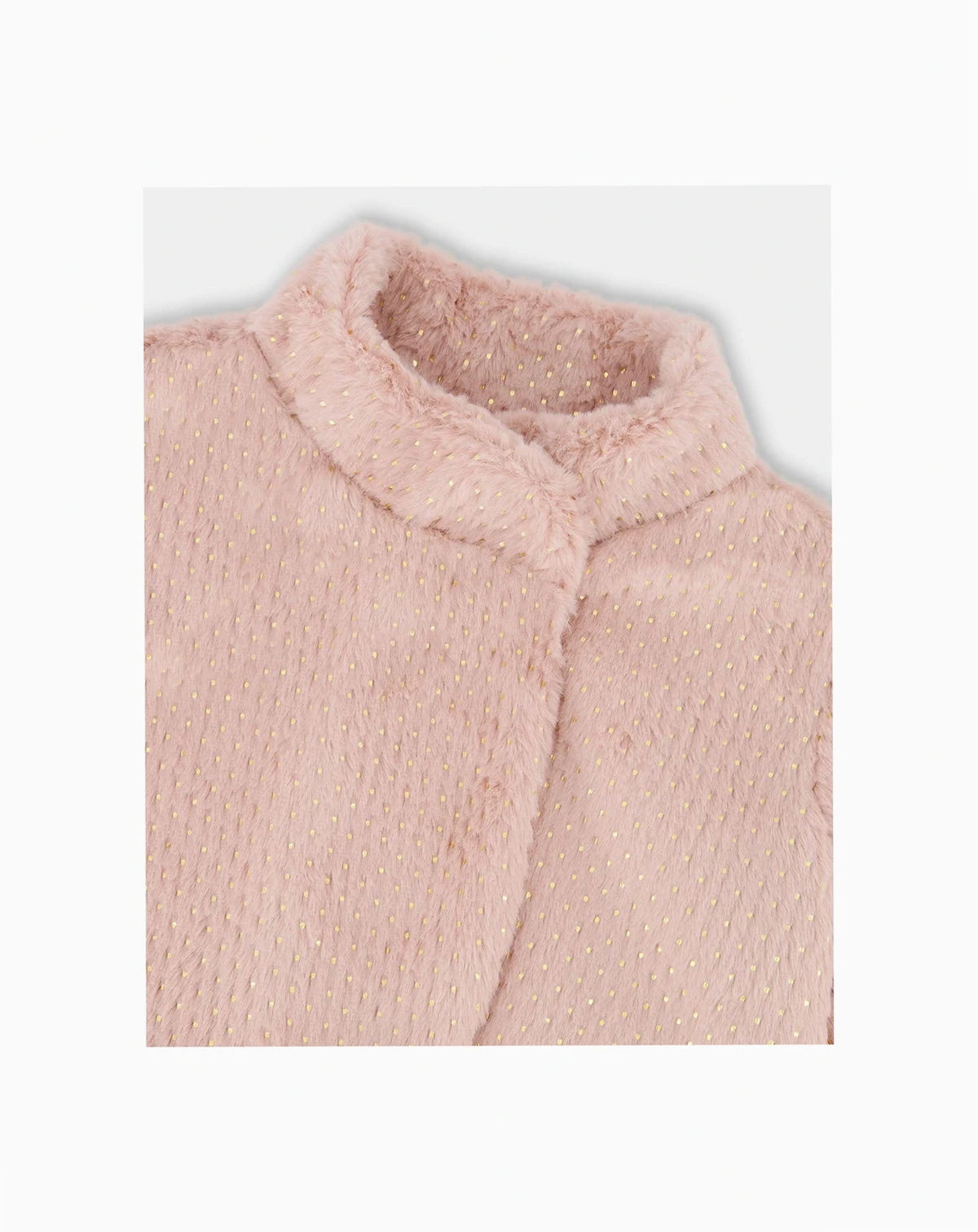 Put the perfect finishing touch on any look in our Starry Night collection with this fun, faux fur outerwear piece. Long sleeves and a high neckline keep it soft and cozy, while a shimmering dot pattern makes it glisten from every angle. Teamed with a matching skirt or layered over her favorite dress, it's made for the girl who always wants to shine!