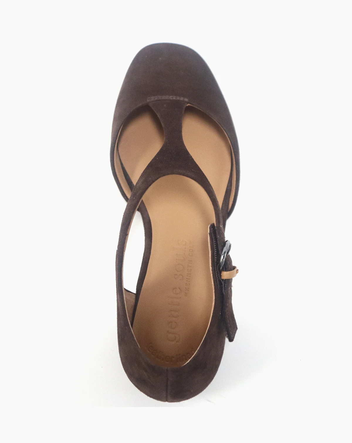 Elegance takes an understated form in these Gentle Souls Wyatt flats, featuring a graceful cutout and a delicate T-strap. The modern design brings timeless style to every step. Crafted for comfort and shaped with subtle sophistication, they pair effortlessly with tailored trousers or casual dresses.