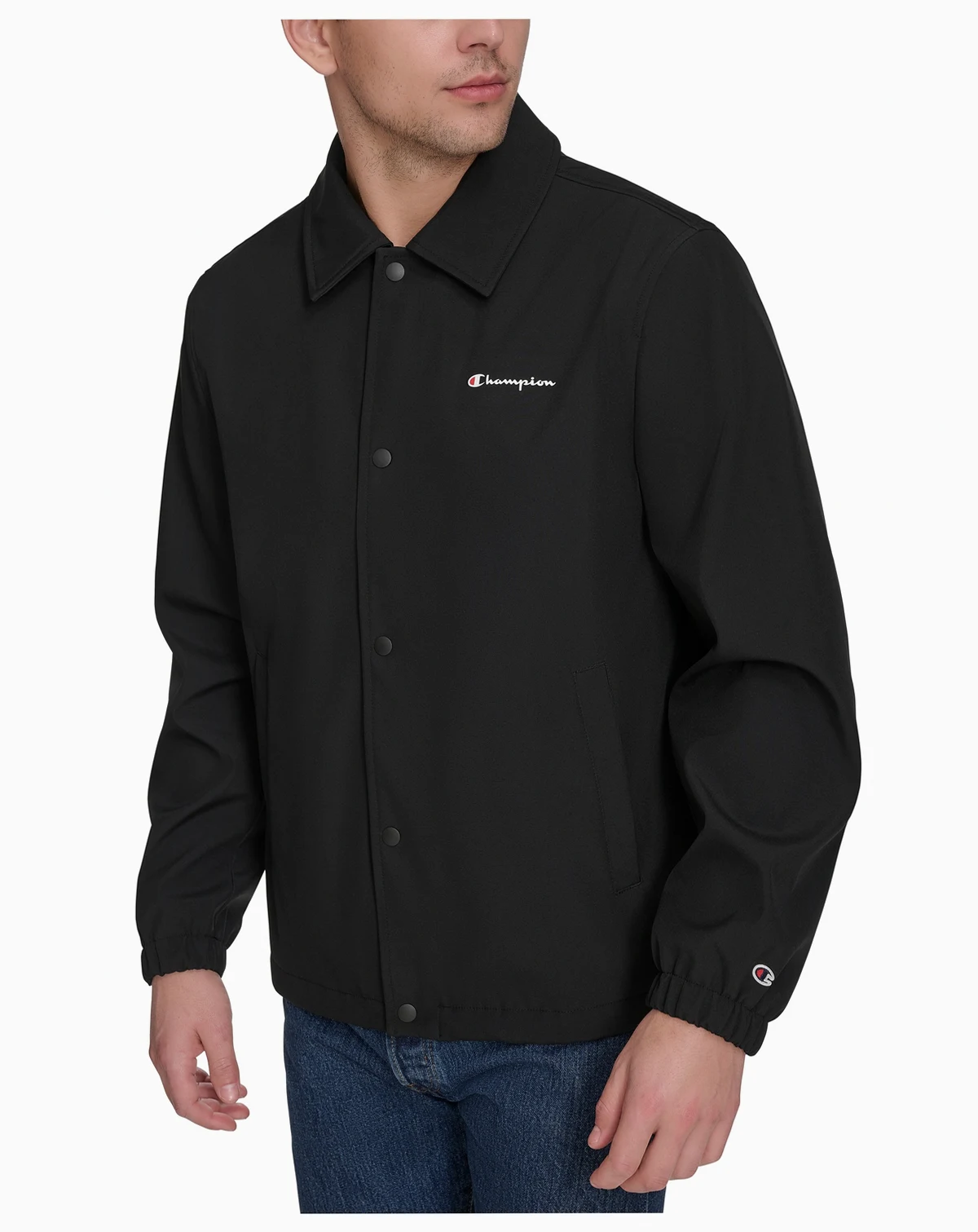 Pared down for essential, confident style, this all-black jacket from Champion is crowned with their iconic logo over the heart.