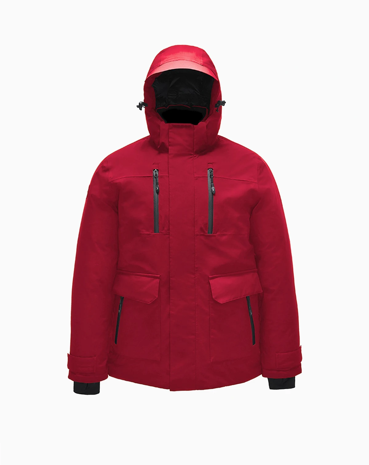 Brand new in our Reforged Supply collection, meet the Anvil short waterproof down jacket - a modern take on winter outerwear designed for the active man. With its shorter length and bomber coat styling, it offers the perfect balance of mobility and protection. Crafted with recycled down and fabrics, it reflects our commitment to sustainability and performance. Its insulated detachable hood, fleece-lined collar, and adjustable cuffs provide customizable comfort and warmth. Equipped with multiple external pockets with water-repellent closures, it ensures easy access to your belongings while on the go. Completely windproof and seam-sealed waterproof, stay dry and stay ahead of the cold.