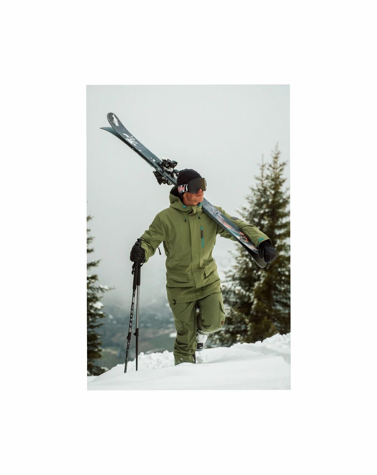 Made from 100% nylon sourced from ocean waste (mainly fishing nets), it boasts a 20,000mm waterproof rating, 20,000g/m² breathability, and a zero-carbon DWR coating for ultimate protection. Features include a relaxed fit for layering, side zip for easy access, adjustable elastic straps, kangaroo pouch pocket, two cargo pockets, two back pockets, ankle gaiters, leg vents, and ankle zips. Taffeta-lined seat adds warmth, while durable construction ensures comfort in all conditions.