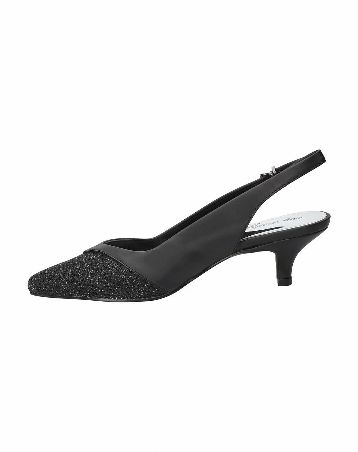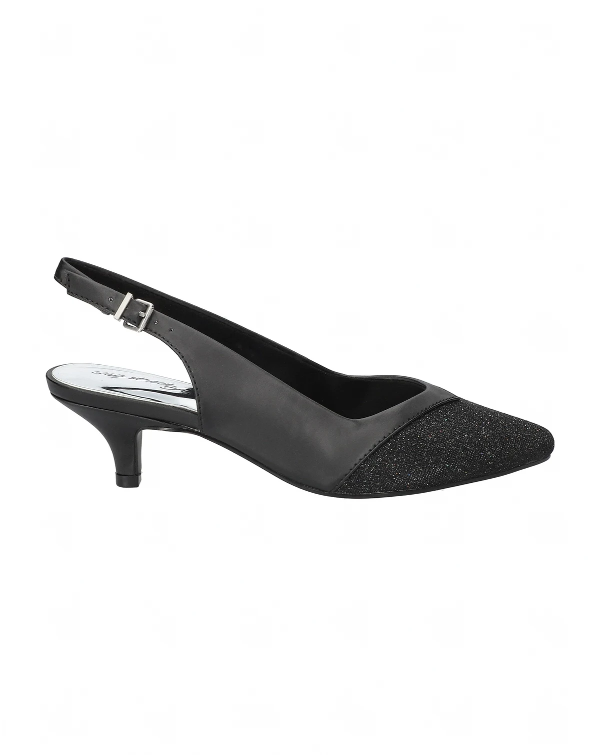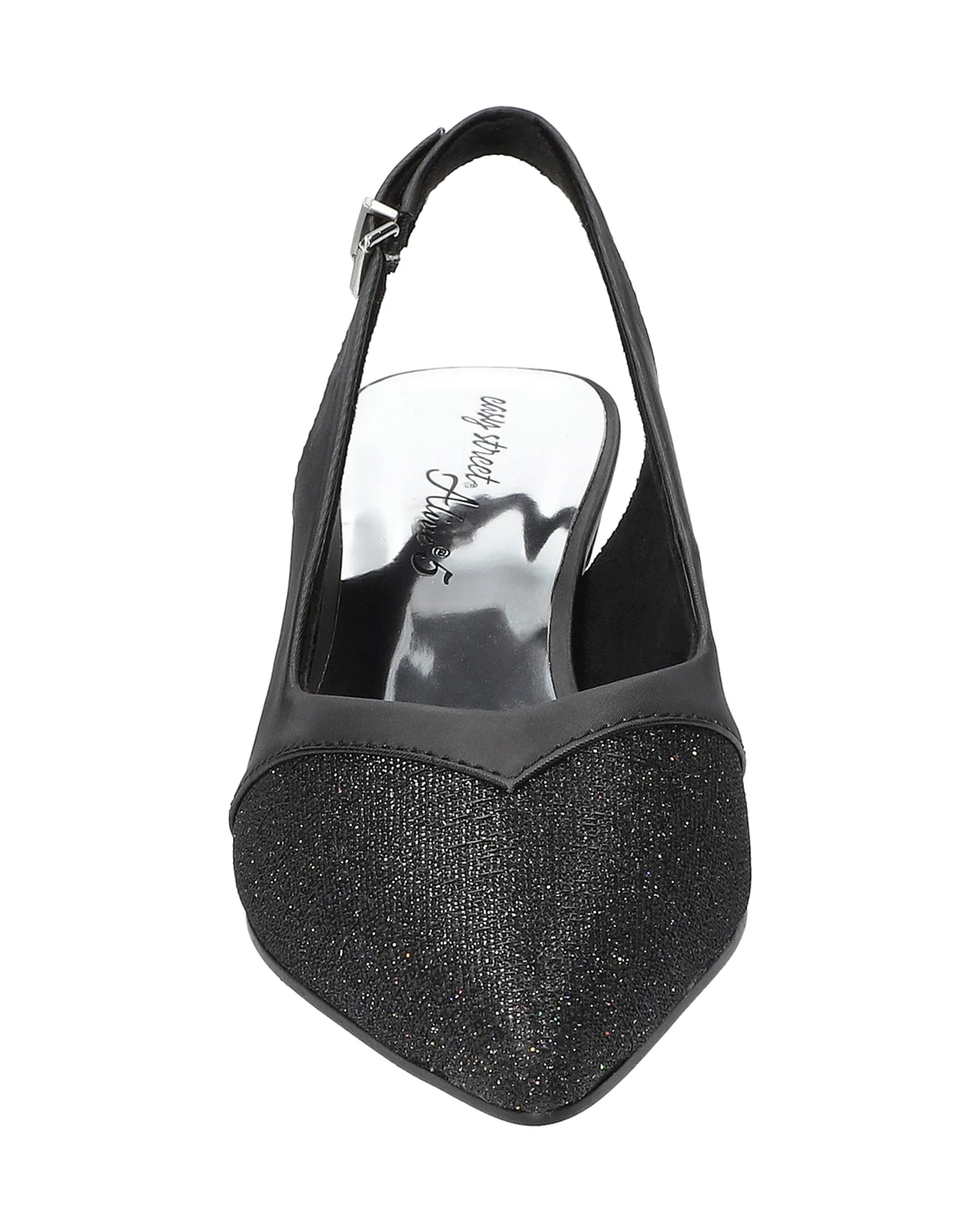Vivid by Easy Street is an excellent choice for any occasion. It features a fashionable kitten heel and a pointed-toe design, giving it a classic, feminine silhouette. An adjustable buckled slingback strap provides a secure and customized fit. With a generously padded pillow foam footbed and an Easy Flex outsole, this slingback pump provides maximum comfort.