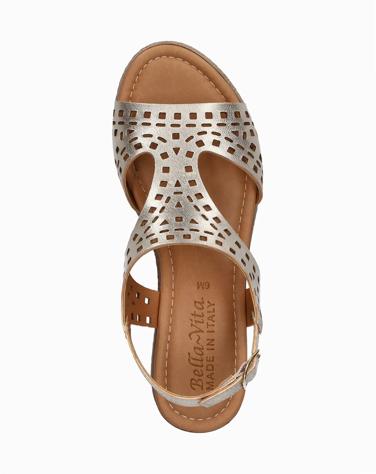 Step into Italian finesse and style with the Ann-Italy by Bella Vita. Embrace the made in Italy chop-out leather upper design on an espadrille-inspired platform wedge, adding sophistication to any outfit. The generously padded insole provides all-day comfort, and the adjustable buckle offers a customizable fit.