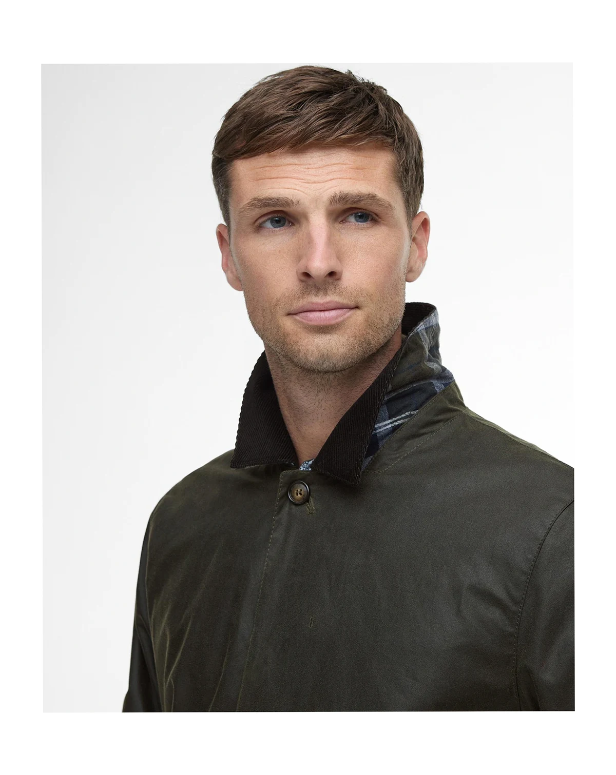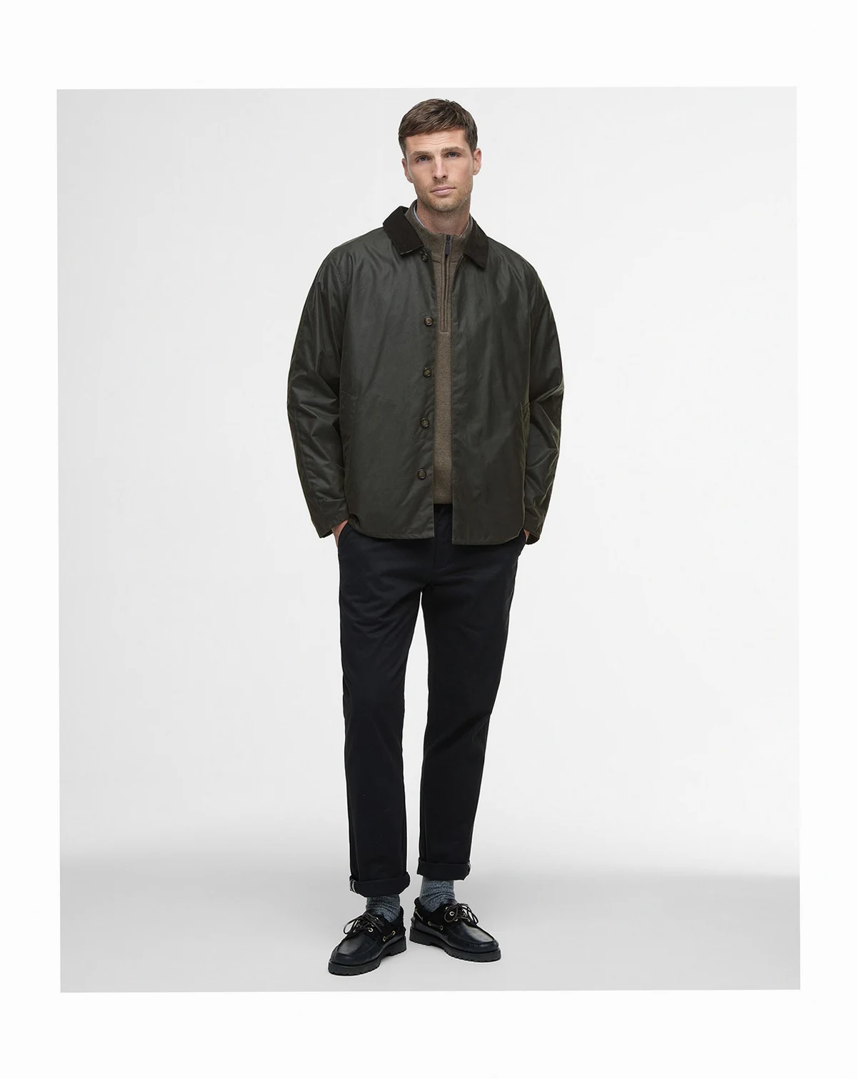 Inspired by a best-selling mac, this jacket by Barbour presents a shorter length for a classic look. The design includes welt pockets, a cord collar, and an inner zip wallet pocket.