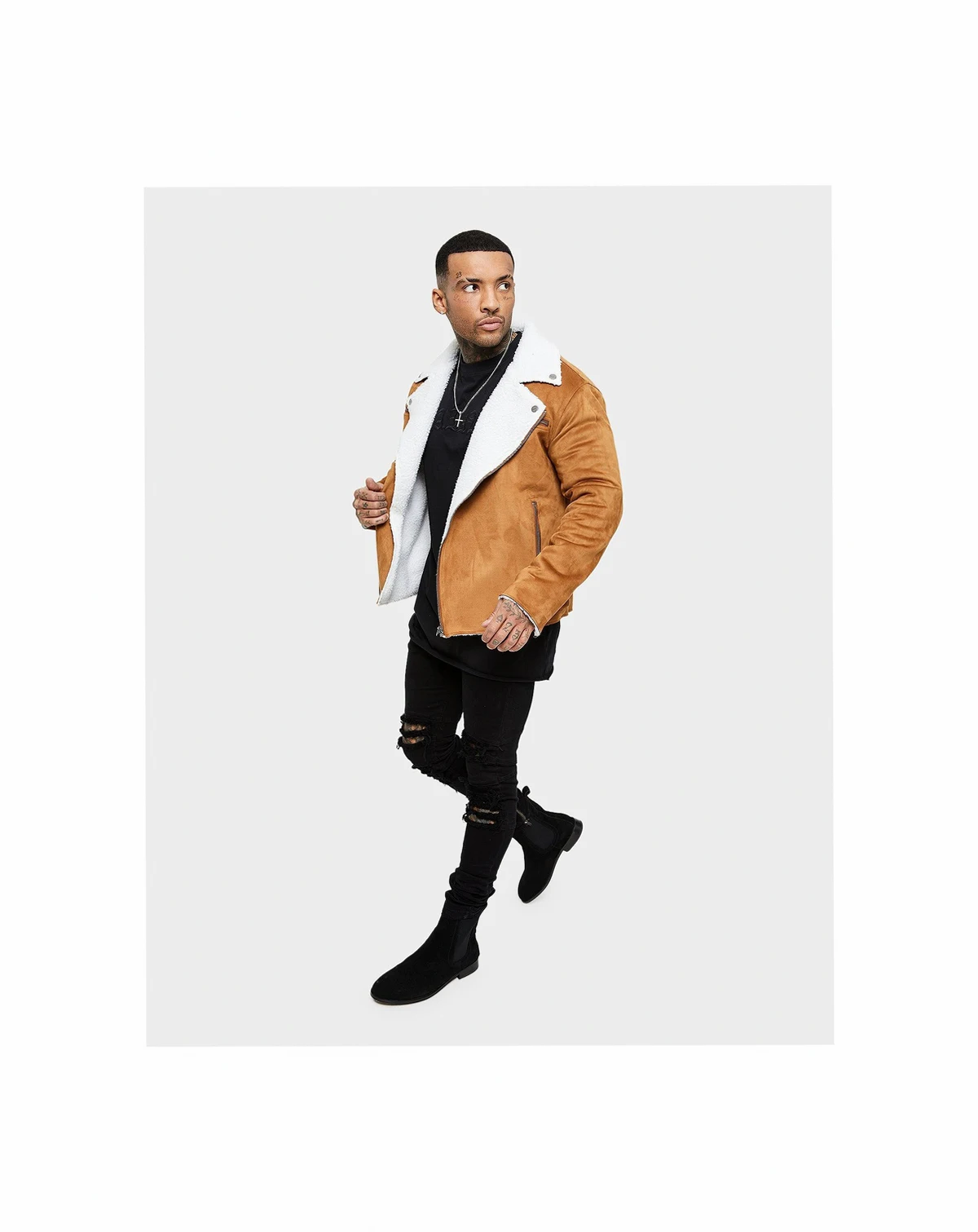 This biker jacket takes your look to another level. When you're layering up, you'll want to grab this every time thanks to its soft touch faux suede construction. The cozy lining works alongside the biker style panels and piping throughout to bring dimension to the jacket.