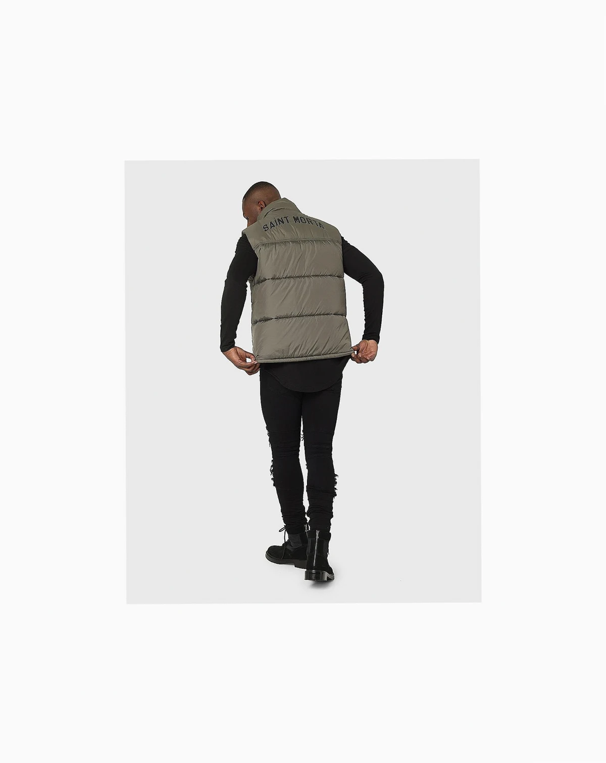 This update puffer vest is your go to outerwear piece of the season. With it's classic SAINT MORTA logo across the back, it features a high mock neck and dual size pockets to keep you warm all season.