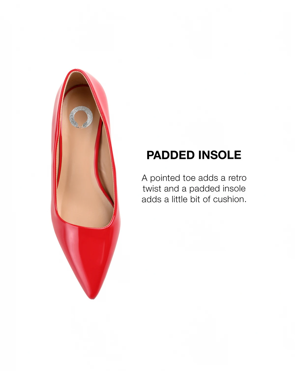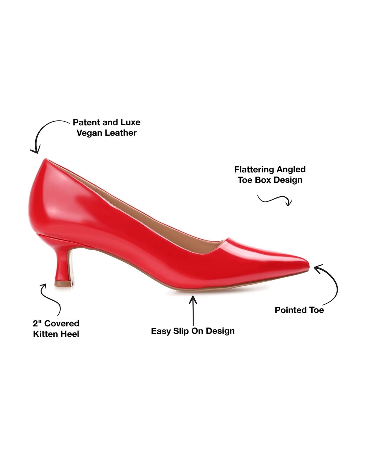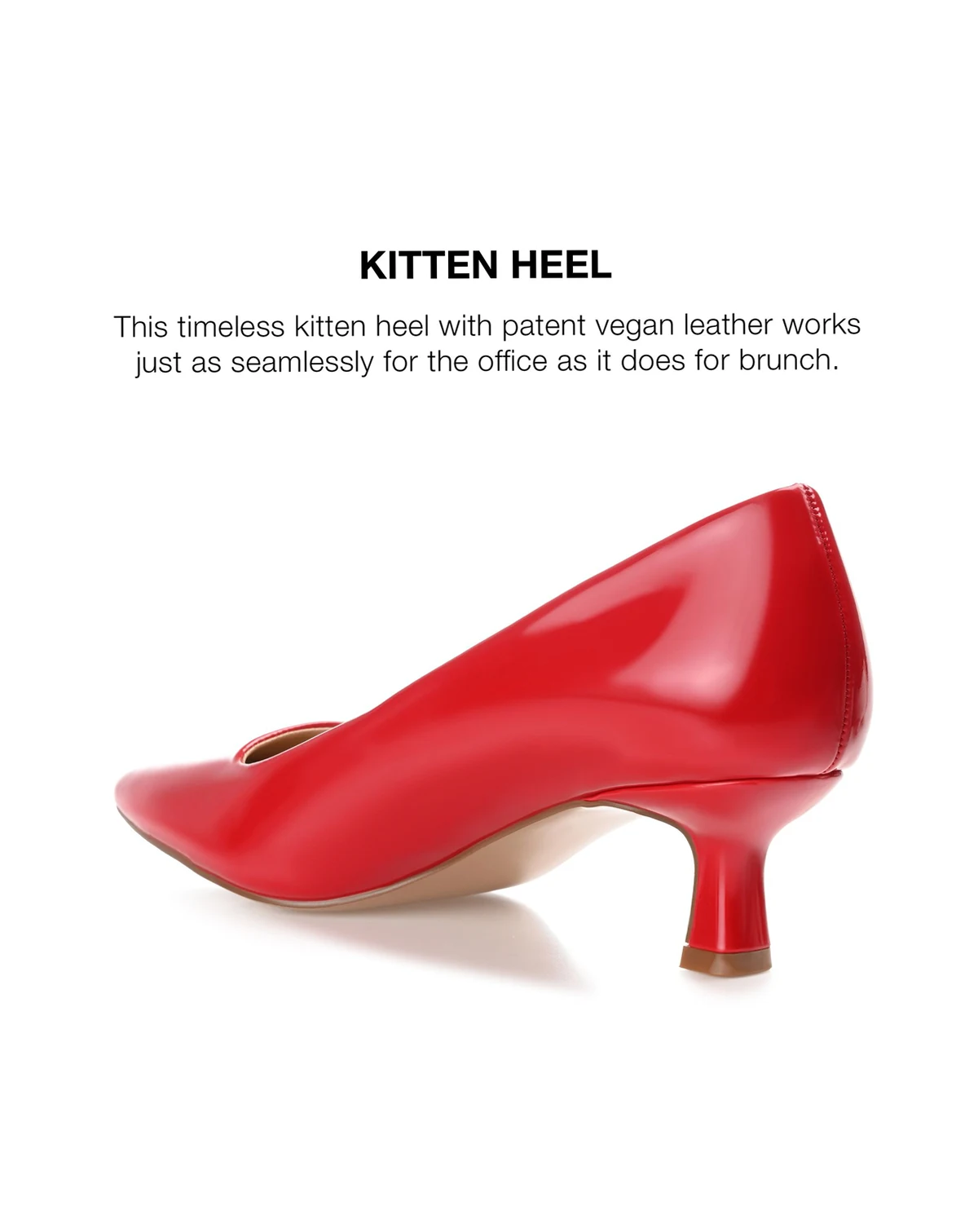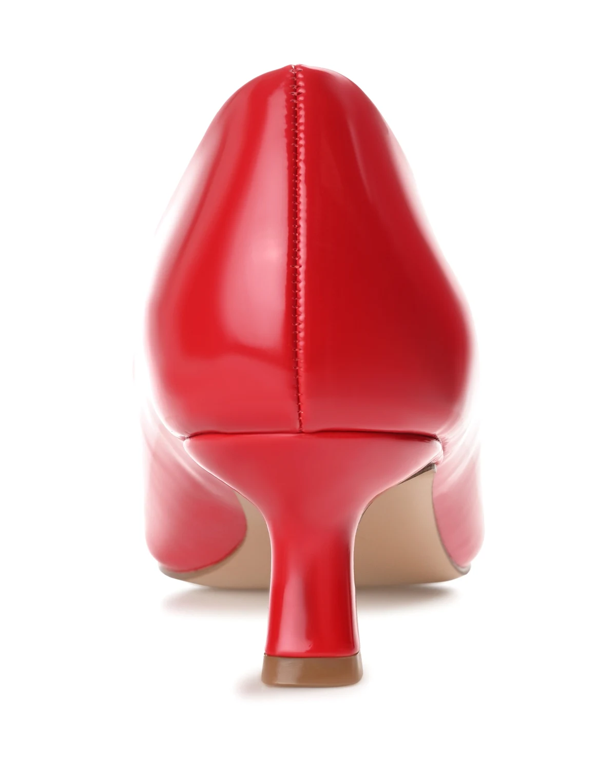 A chic look that works just as seamlessly for the office as it does for brunch with the gals, the Celica heel by Journee Collection. Their low kitten heel, glossy patent faux leather, and padded insole will have you walking around in style and comfort.