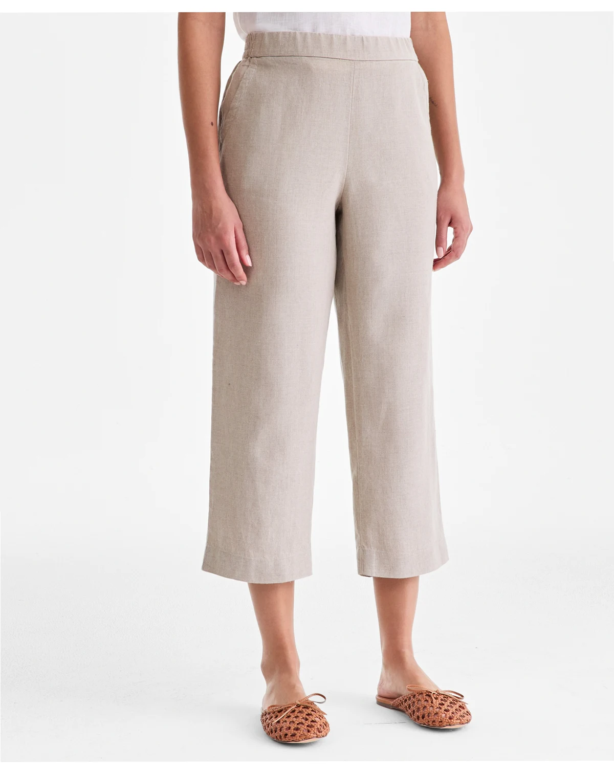 Women's 100% Linen Solid Cropped Pull-On Pants, Created for Macy's