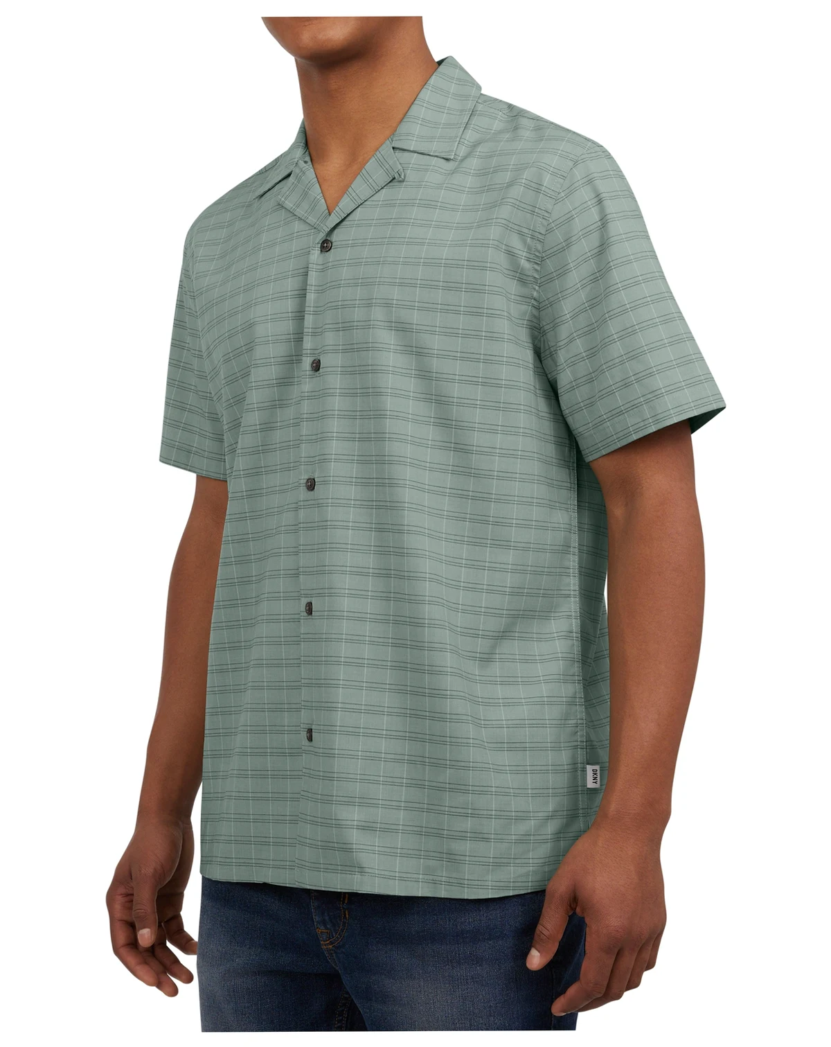 Crafted with a spread collar and button front - aka the classic camp shirt silhouette - the DKNY Men's Manny Camp Shirt will elevate your warm-weather wardrobe. Its lightweight stretch fabric and relaxed silhouette will keep you comfy while the subtle plaid pattern adds interest. Style this versatile men's shirt with your favorite walking shorts for the ultimate laid-back spring outfit.