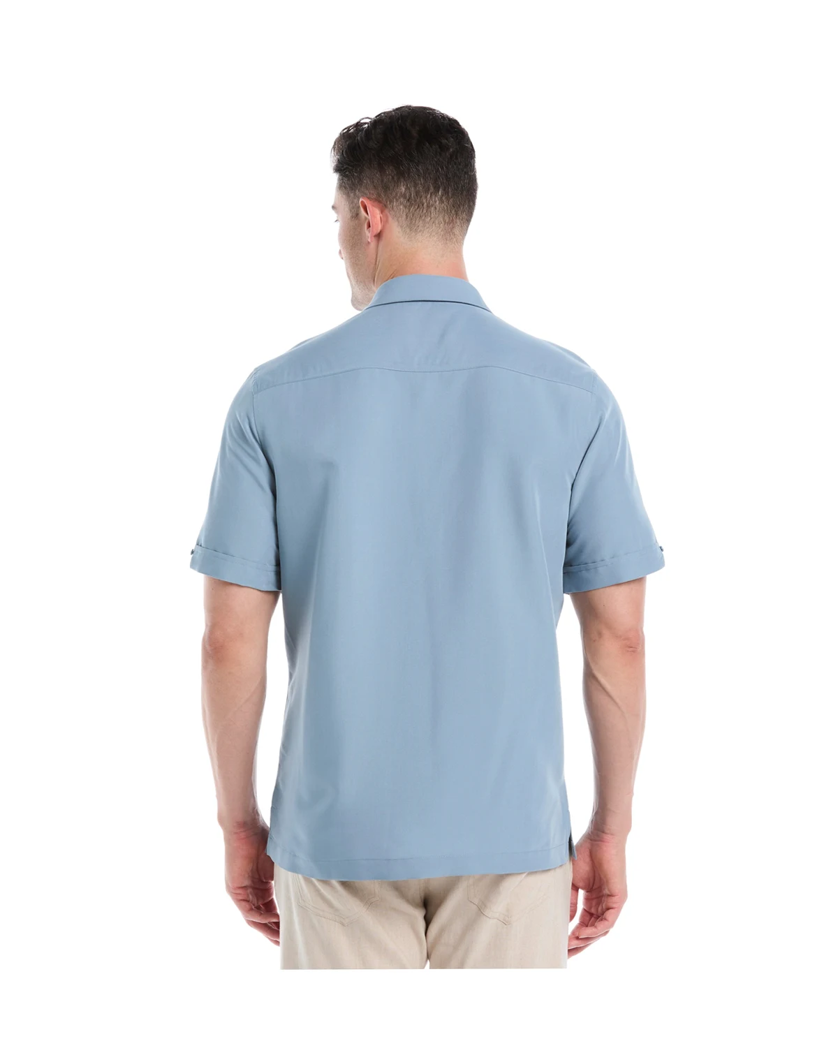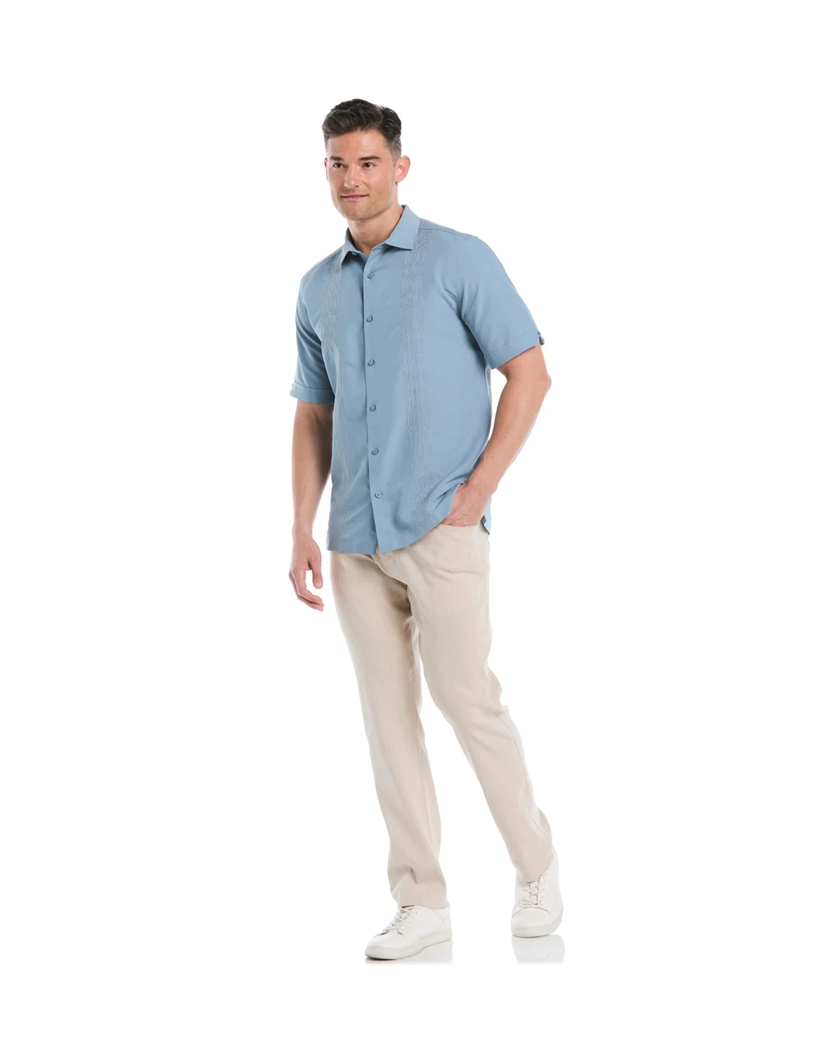 The two-tone geometric embroidery of the Cubavera shirt offers a distinct visual contrast. This short sleeved shirt tailored in a classic fit provides a tidy appearance and allows for comfortable movement. The pointed collar and clean lines allow for versatile styling.