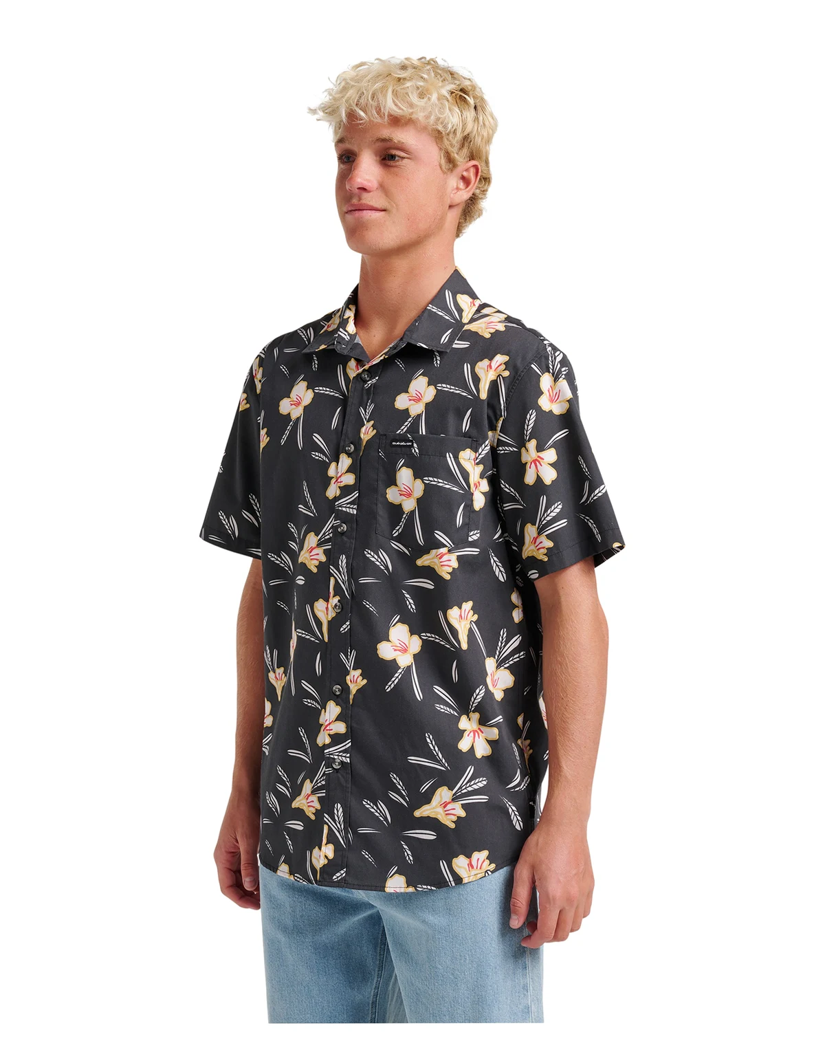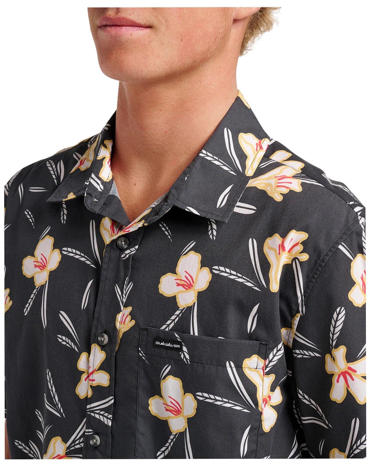 Experience comfort and style with Quiksilver's Short Sleeve Woven Shirt, featuring a single chest pocket, and scalloped hem.