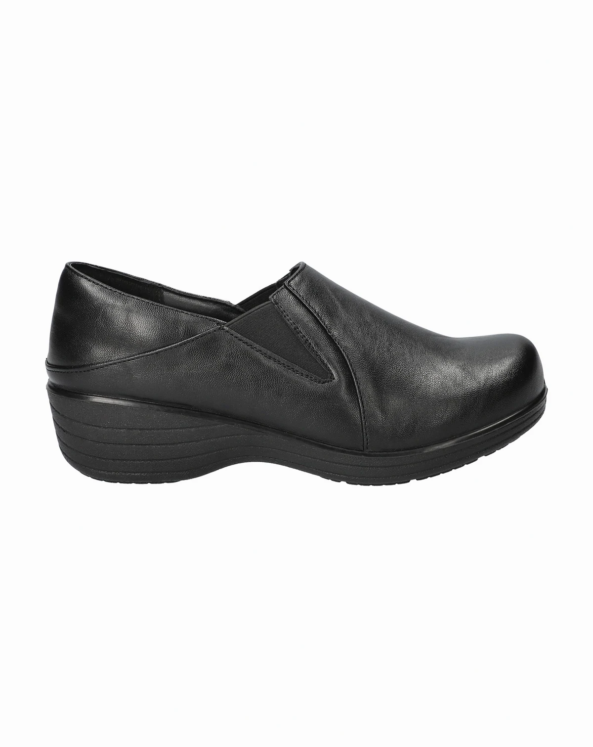 Domino from Easy Works by Easy Street is the twin-gore clog you have been waiting for. It features a non-marking, slip-resistant outsole for added traction. The bold, tooled, and smooth material options give it a unique look, making it perfect for all casual occasions. Enhanced with the Easy Motion Pro Comfort system, the removable contoured insole is designed to provide all-day comfort and support.