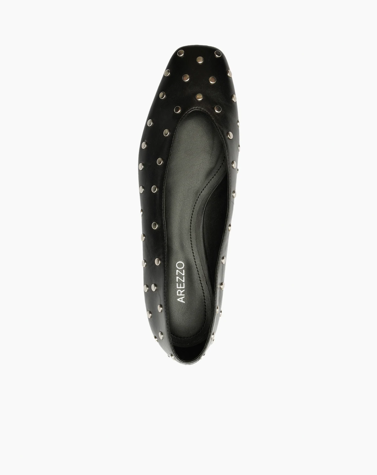 Join the flat trend with the Hayden Ballet. With its eye-catching studs and versatile style with a square toe, the ballet flat can be dressed up or down. Pair it with midi skirts, jeans, and dresses to look and feel amazing.