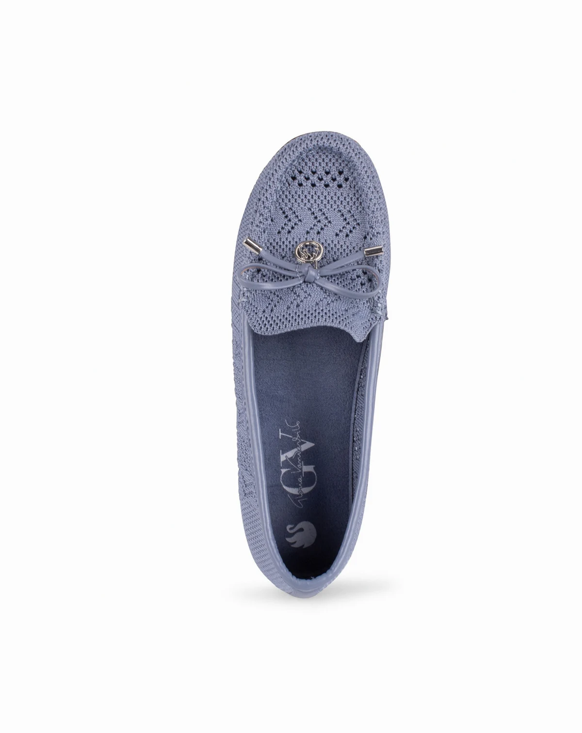 Gloria Vanderbilt Women's Rita slip on loafer with open knit upper. Bow detail and swan logo charm. Comfortable sole for all day support.