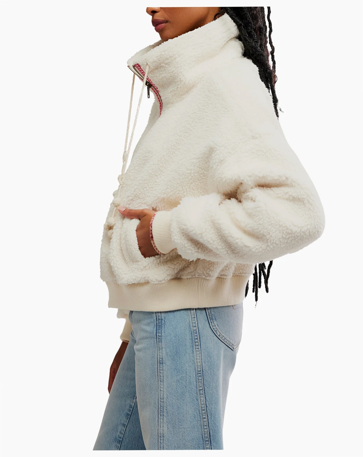 Known for its cozy and relaxed fit, this sherpa cardigan from Free People features a high neck and front zip closure for easy layering. A red gingham pattern and pom pom tie detail add a playful and charming touch. ABOUT THE BRAND: If you love the laid-back charm of boho-chic apparel, you'll find a beautiful selection from Free People at Macy's that suits your style. From ultra-feminine dresses to cute tops, browse the collection of casual, hip designs.