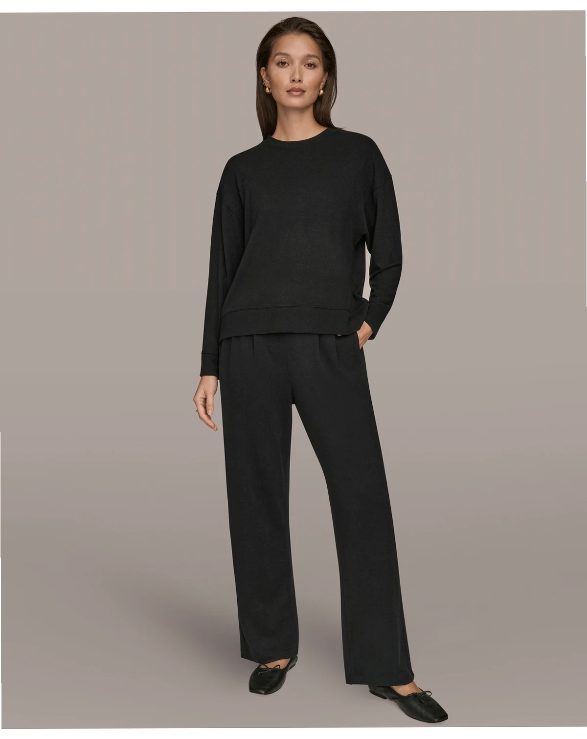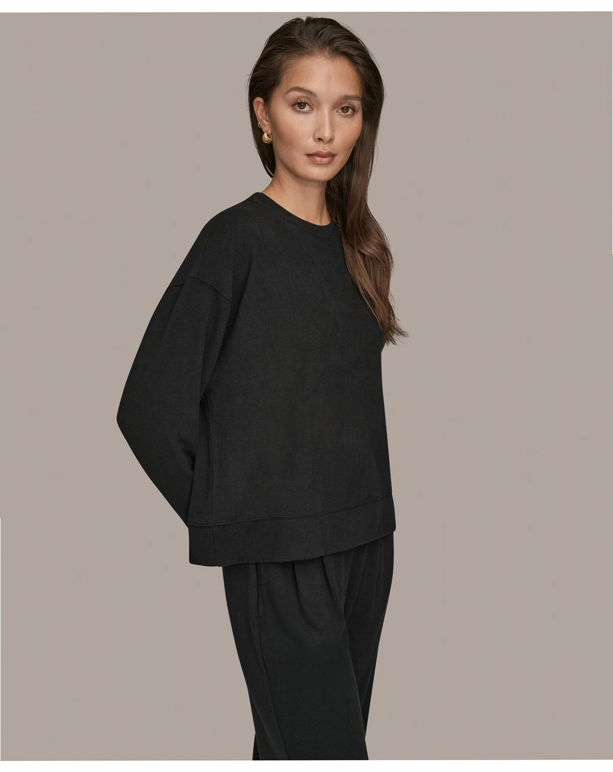 Relaxed luxury defines the Donna Karan New York Women's Brushed Jersey Long Sleeve Crew Neck Top, featuring long sleeves, a classic crewneck, and soft brushed jersey knit. Perfect for cozy holidays, casual weekends, or effortless layering.
