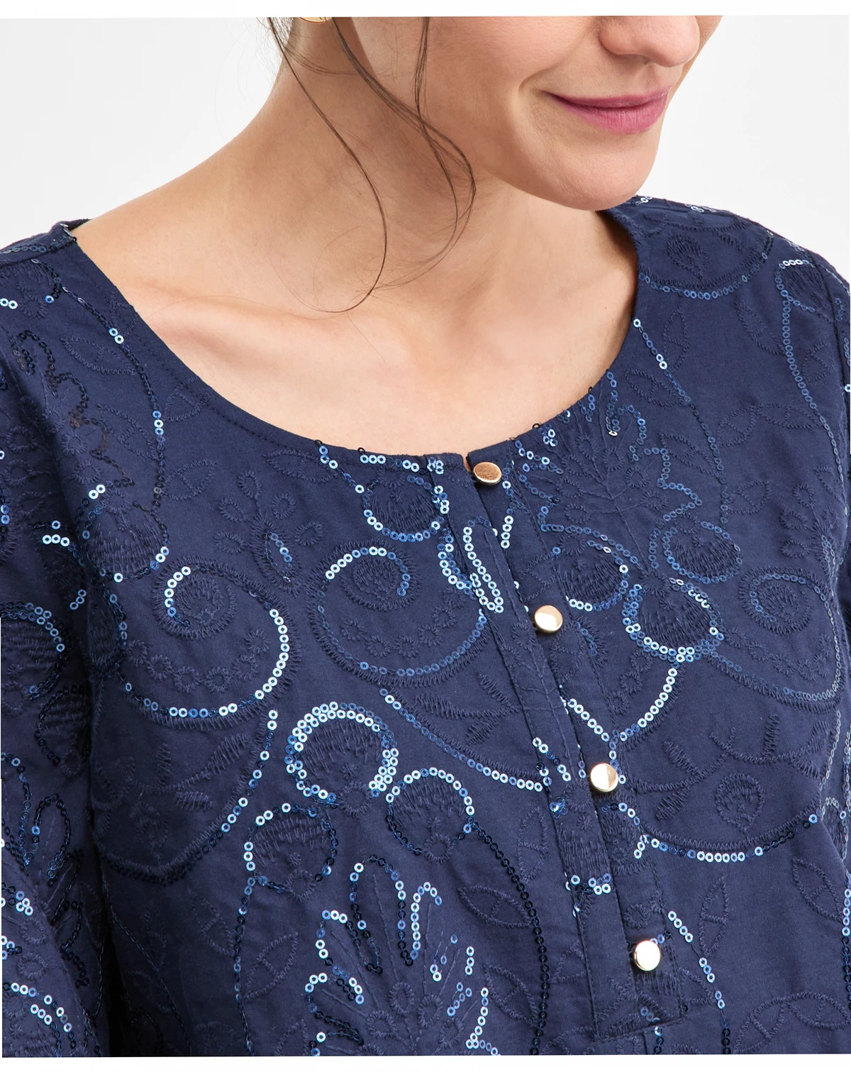 Finished in a breathable cotton shell, this classic silhouette is adorned with tonal sequins for a subtle, yet elegant finesse to this JM Collection style-choice.