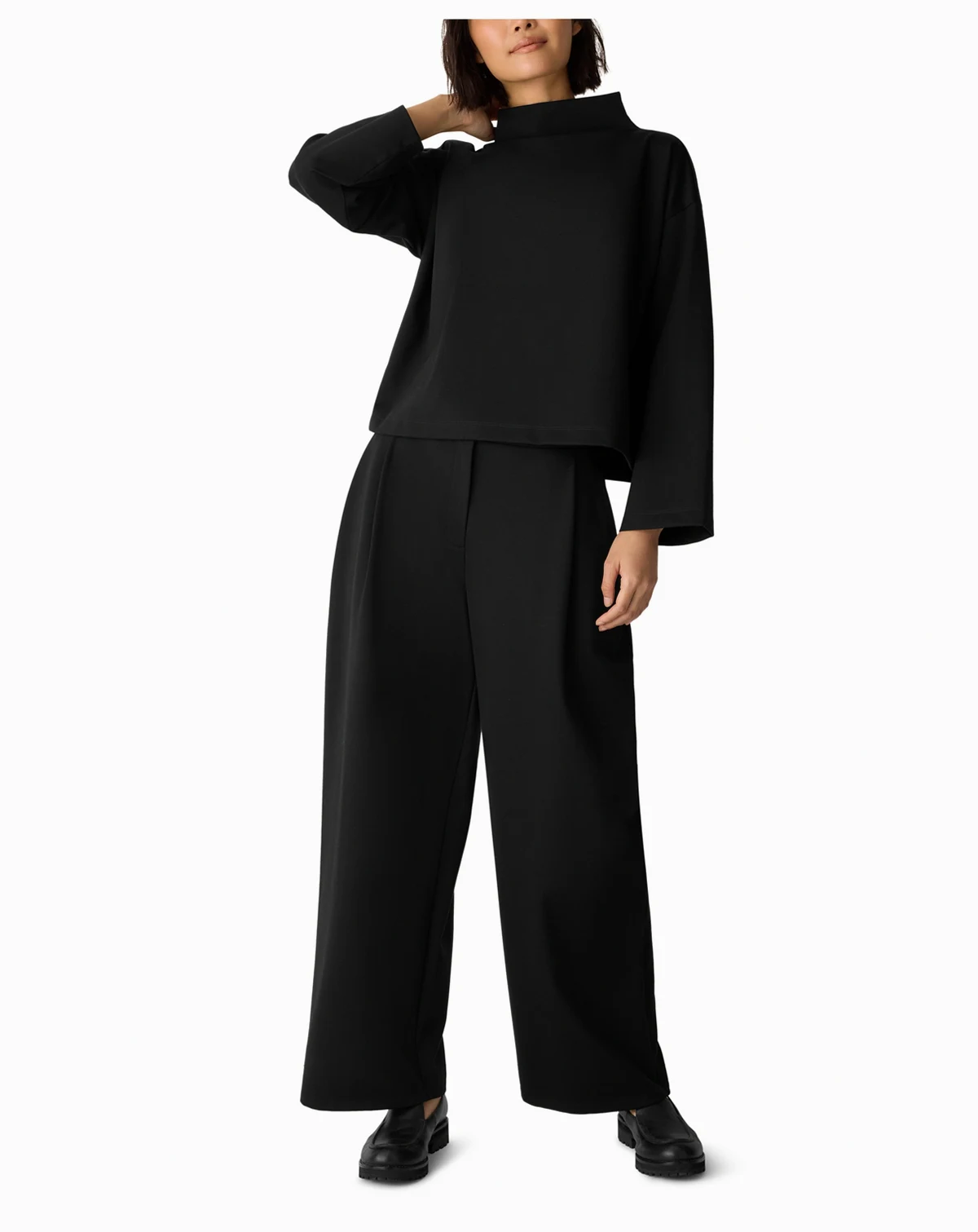 Move with ease in a smooth, sleek knit on these Eileen Fisher high-rise wide-leg pants featuring pleats. The lightweight ponte construction offers a versatile option for work or weekend wear.