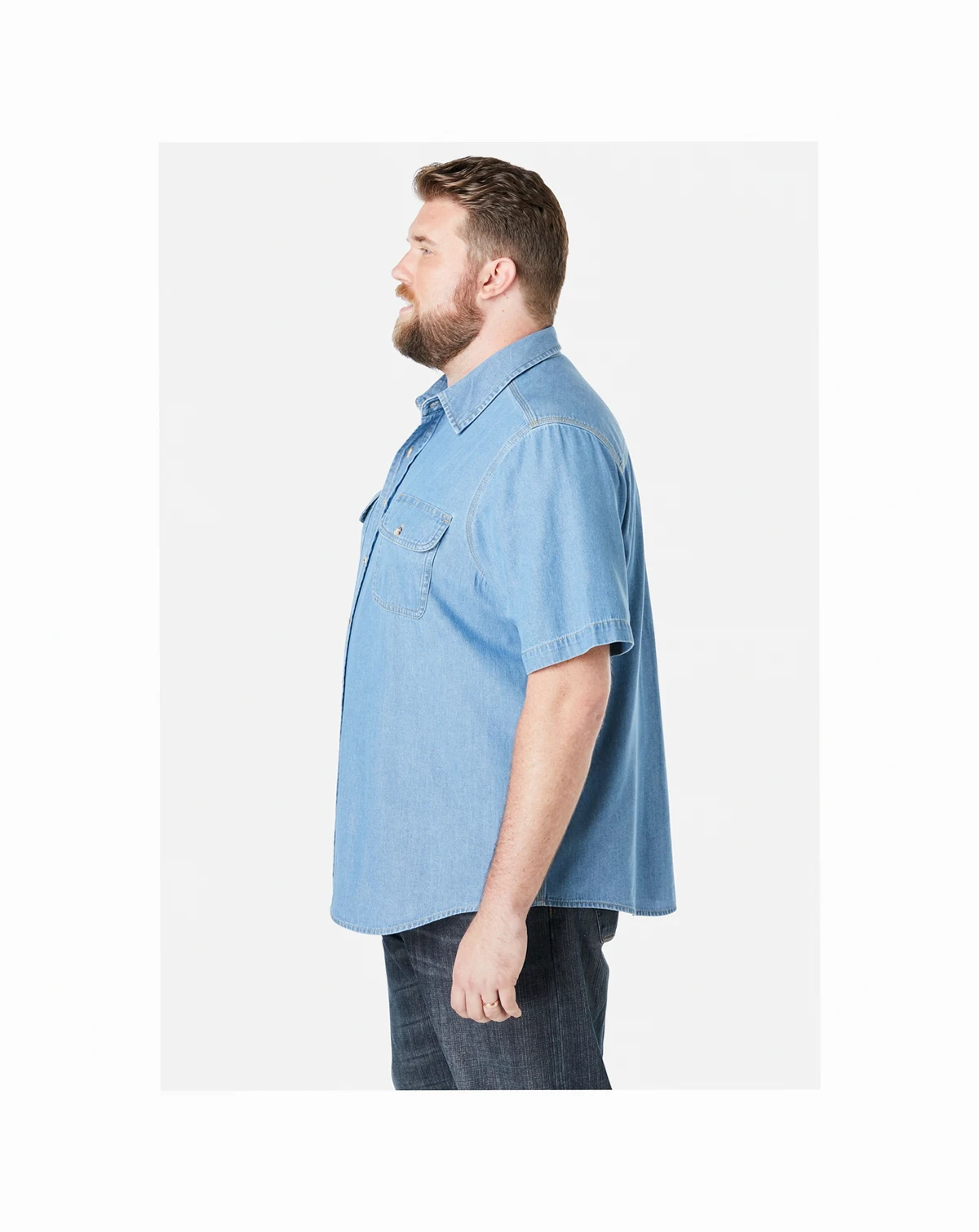 This denim/twill Boulder Creek Short-Sleeve shirt is made from lightweight cotton–perfect for year-round wear. With a classic button front, you can dress this shirt up with slacks or down with your favorite denim for any occasion. Relaxed fit. Two button-through chest pockets. Big length approx. 34" Tall length approx. 36". Durable cotton twill or denim. Machine wash imported