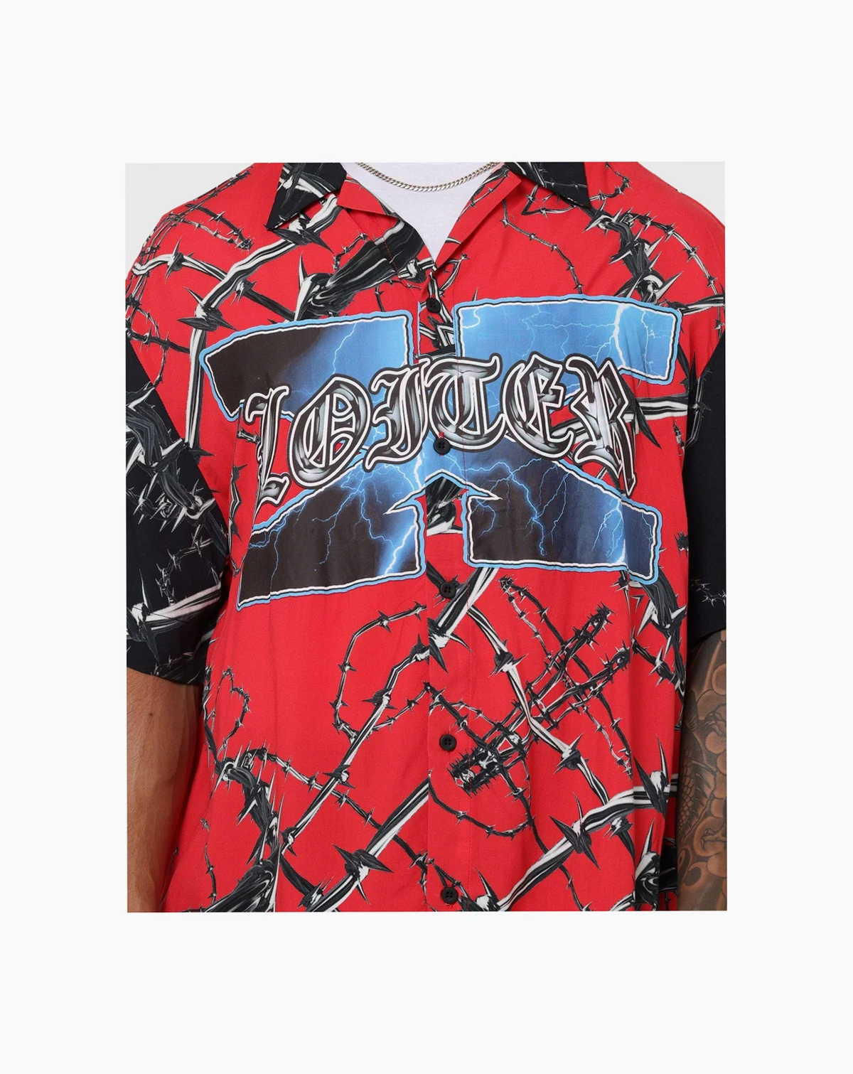Show your authority and take the lead in streetwear fashion with the Frontline Button Up Shirt from Loiter. Electrifying custom graphics feature on this lightweight button-up, designed to be a versatile piece in your streetwear closet.