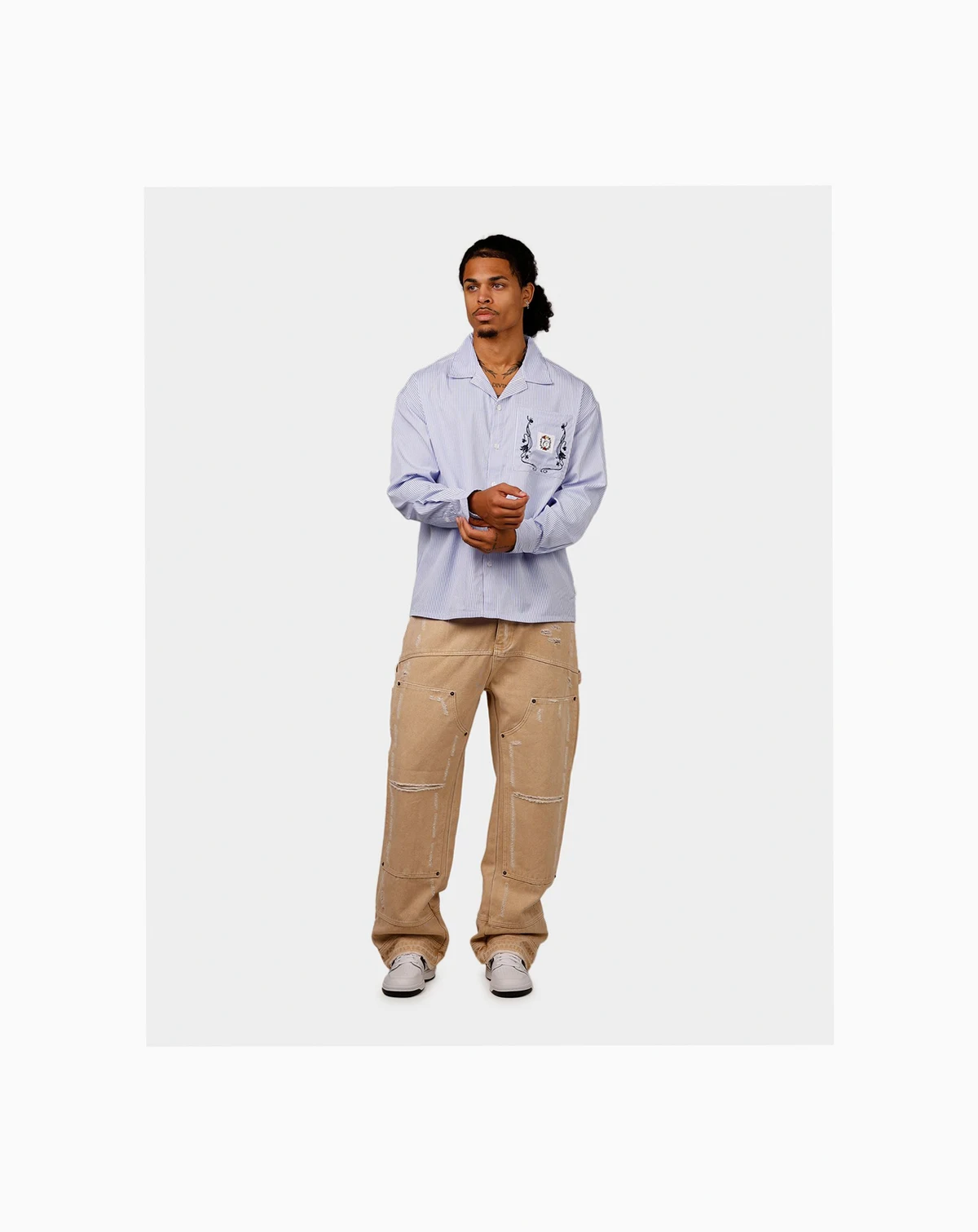 Clean up and show up in the Floral Oversized Button Up Shirt. Giving your 'fits a refresh, this shirt features classic striped design and is topped with embroidered graphics to the chest pocket. Finished off with a full button close so you can choose your look.