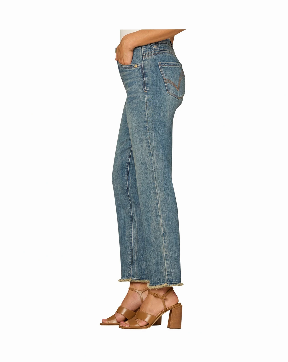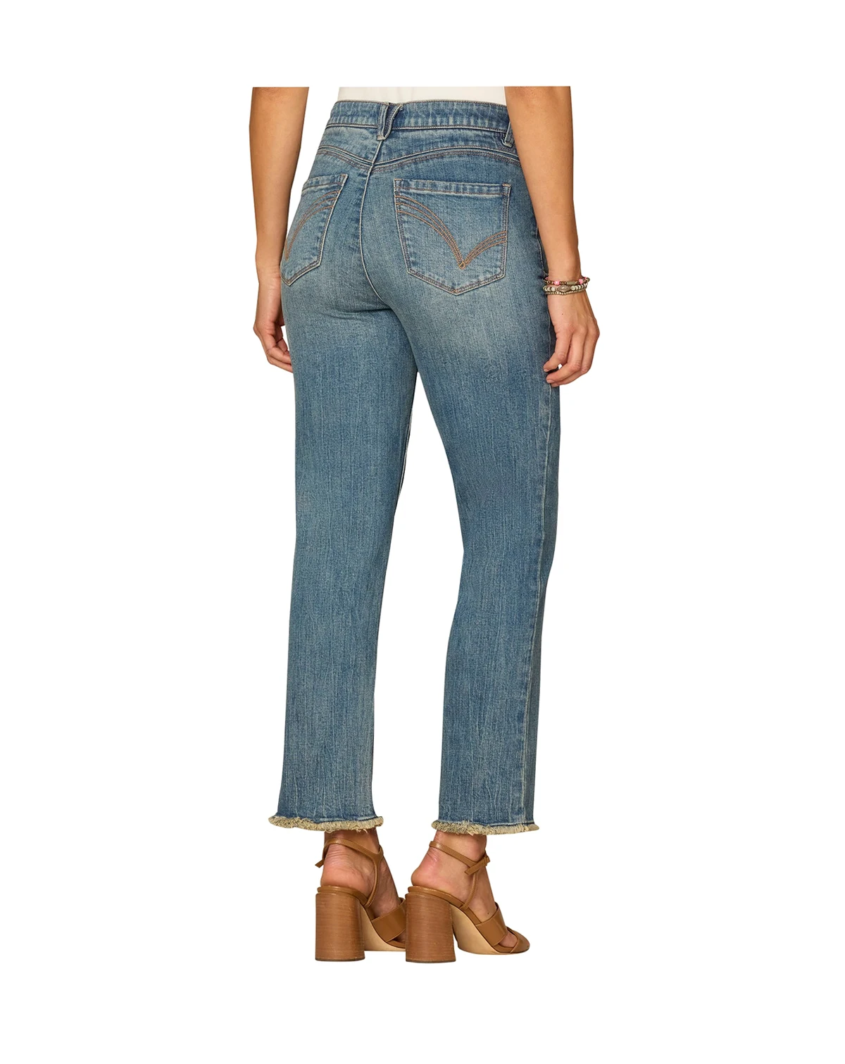 Modern and flattering, these Democracy jeans feature a straight silhouette and an embroidered ankle skimmer with a fray hem. "Ab"Solution technology offers an elastic waistband, mesh panels, and strategically placed style lines for comfort and shaping, while a zip fly with button closure and four pockets complete the functional design.